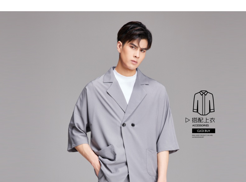 PINLI品立夏季新款设计感拼接短袖衬衫潮牌拉链宽松翻领上衣B252113039