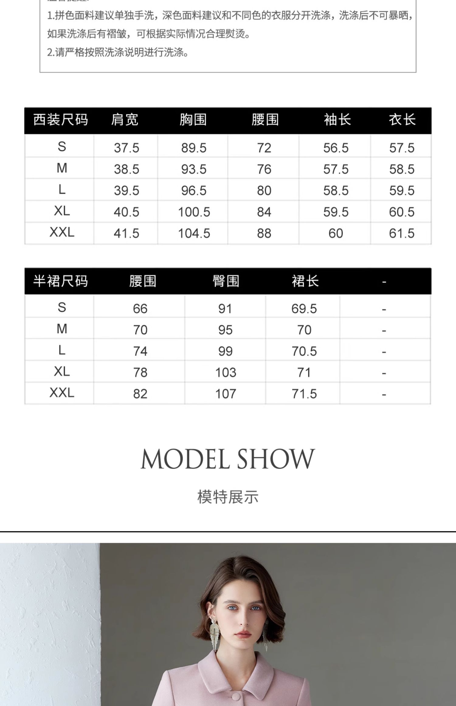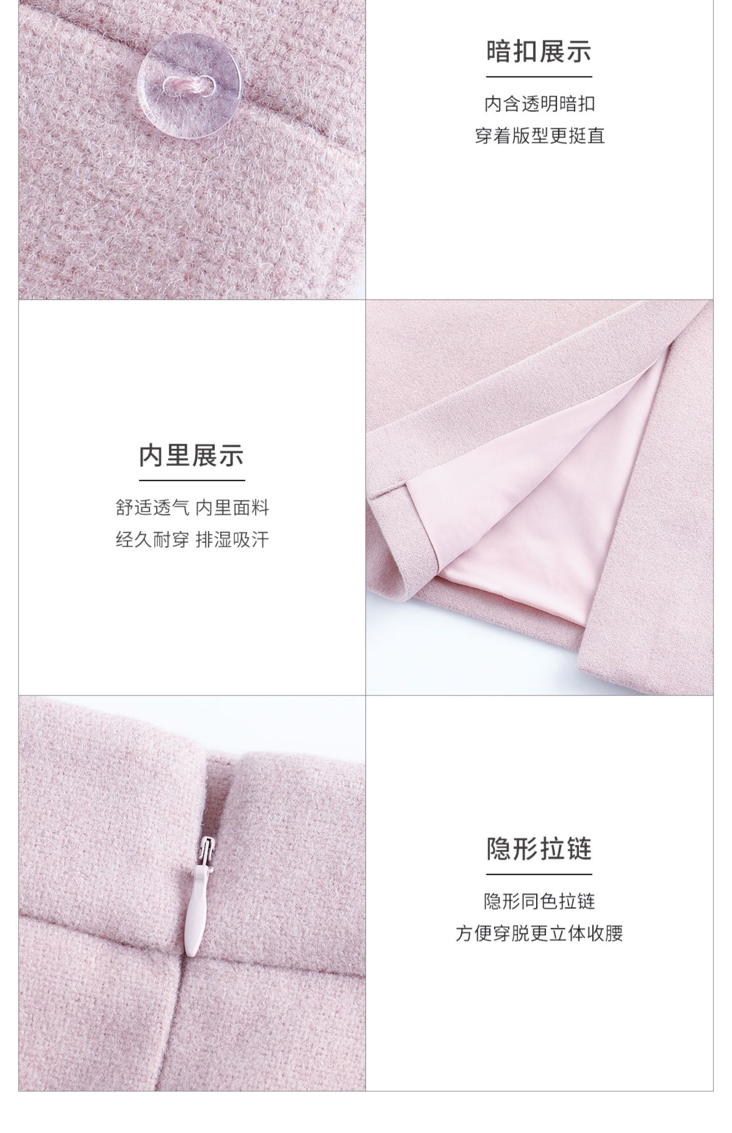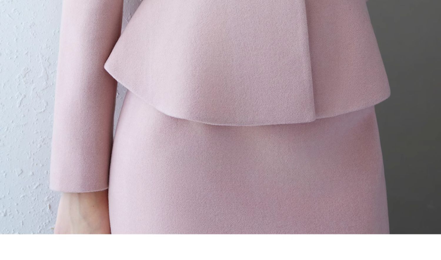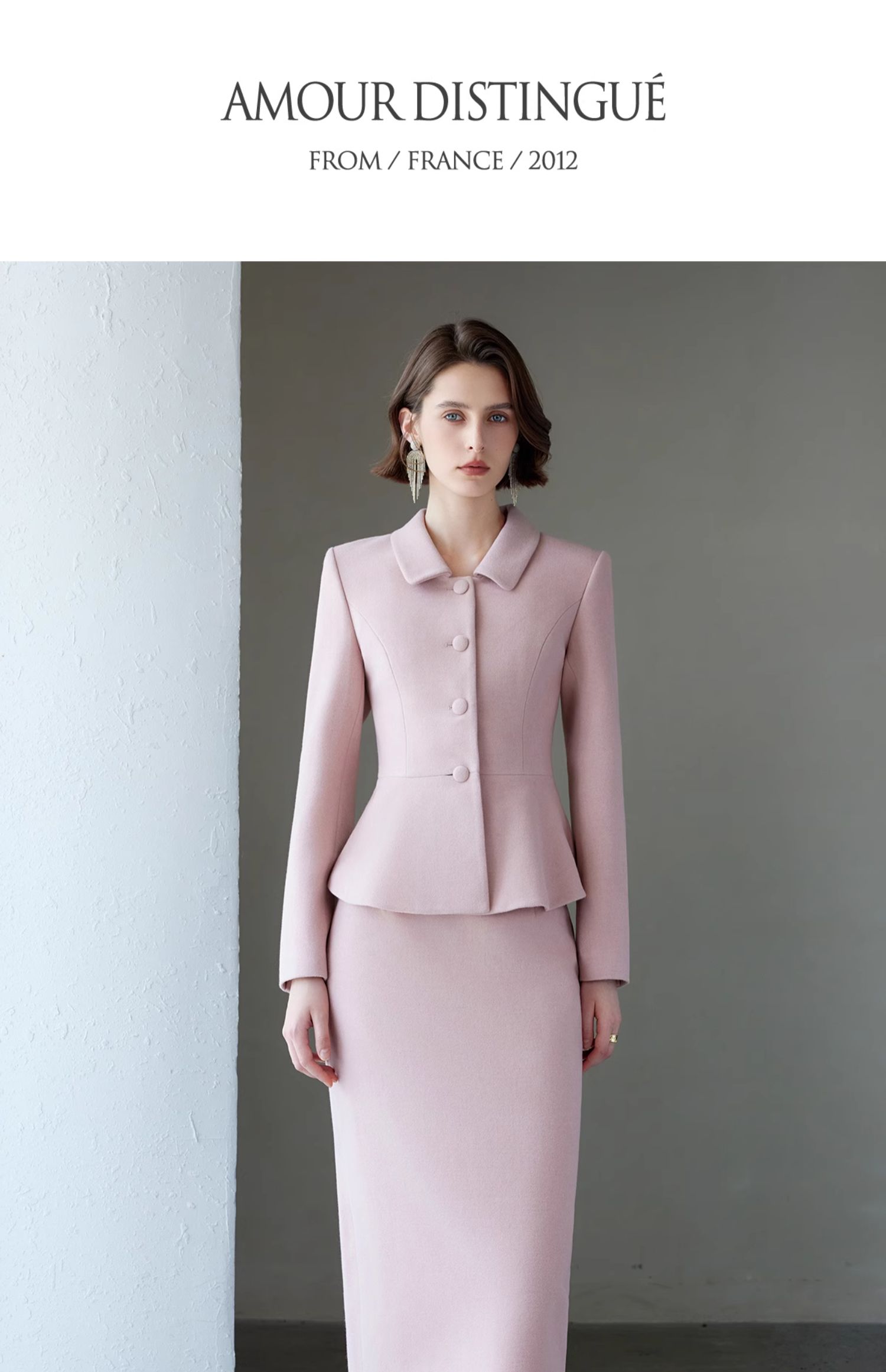 AD韩版名媛范套装女小立领短外套2024新款冬季毛呢粉色中长款裙子