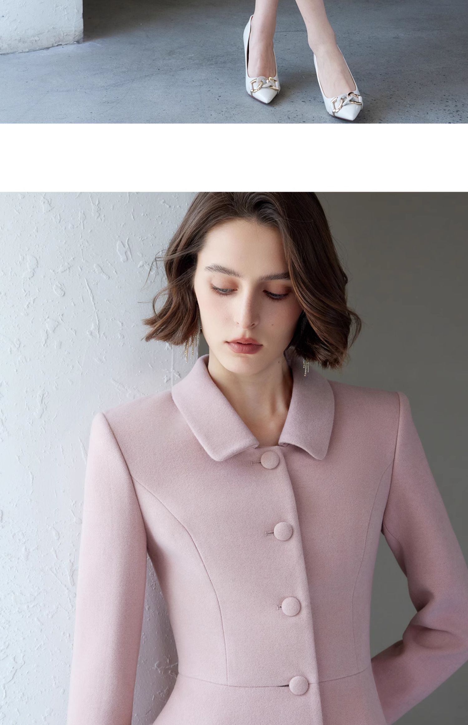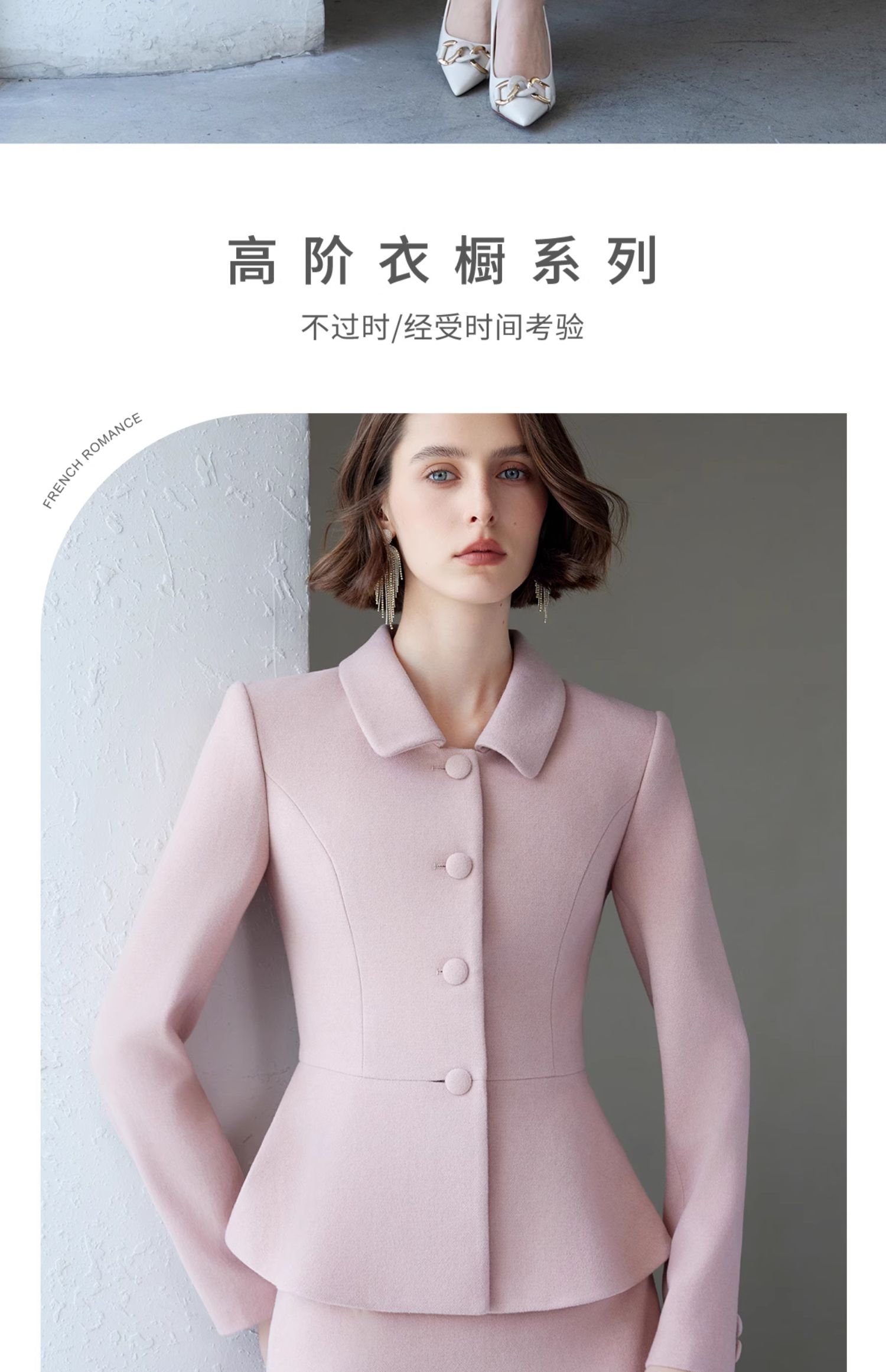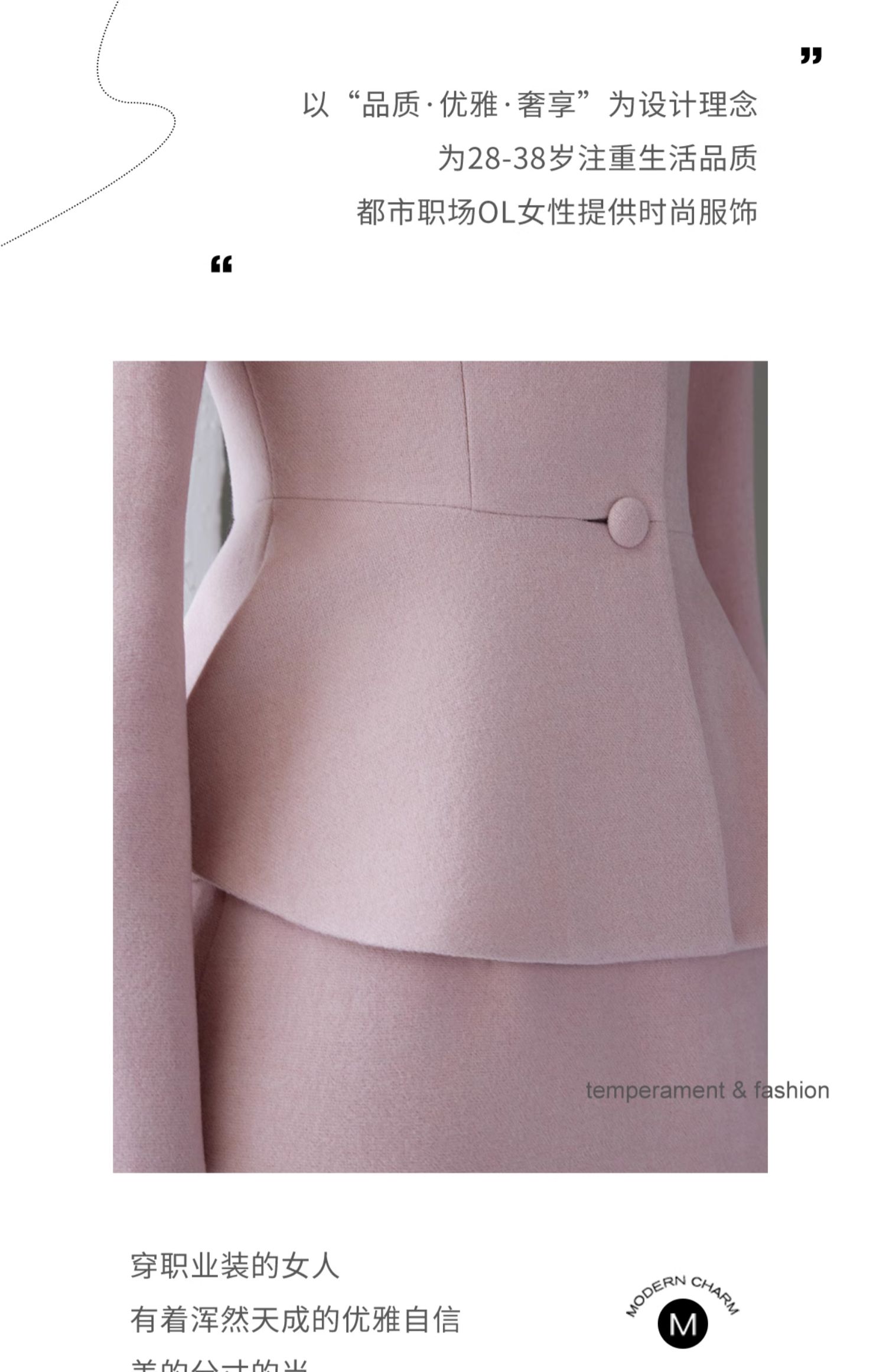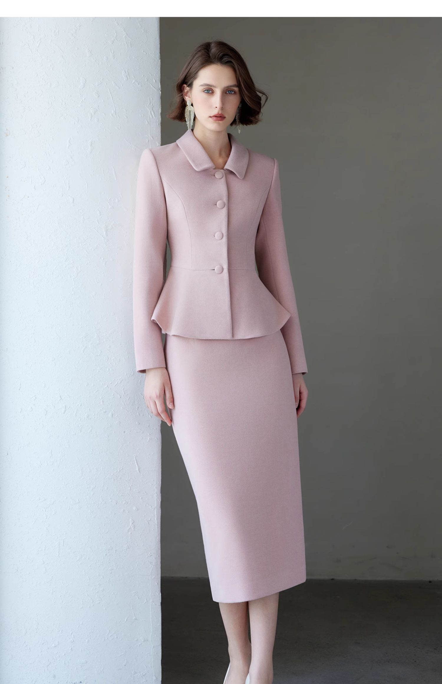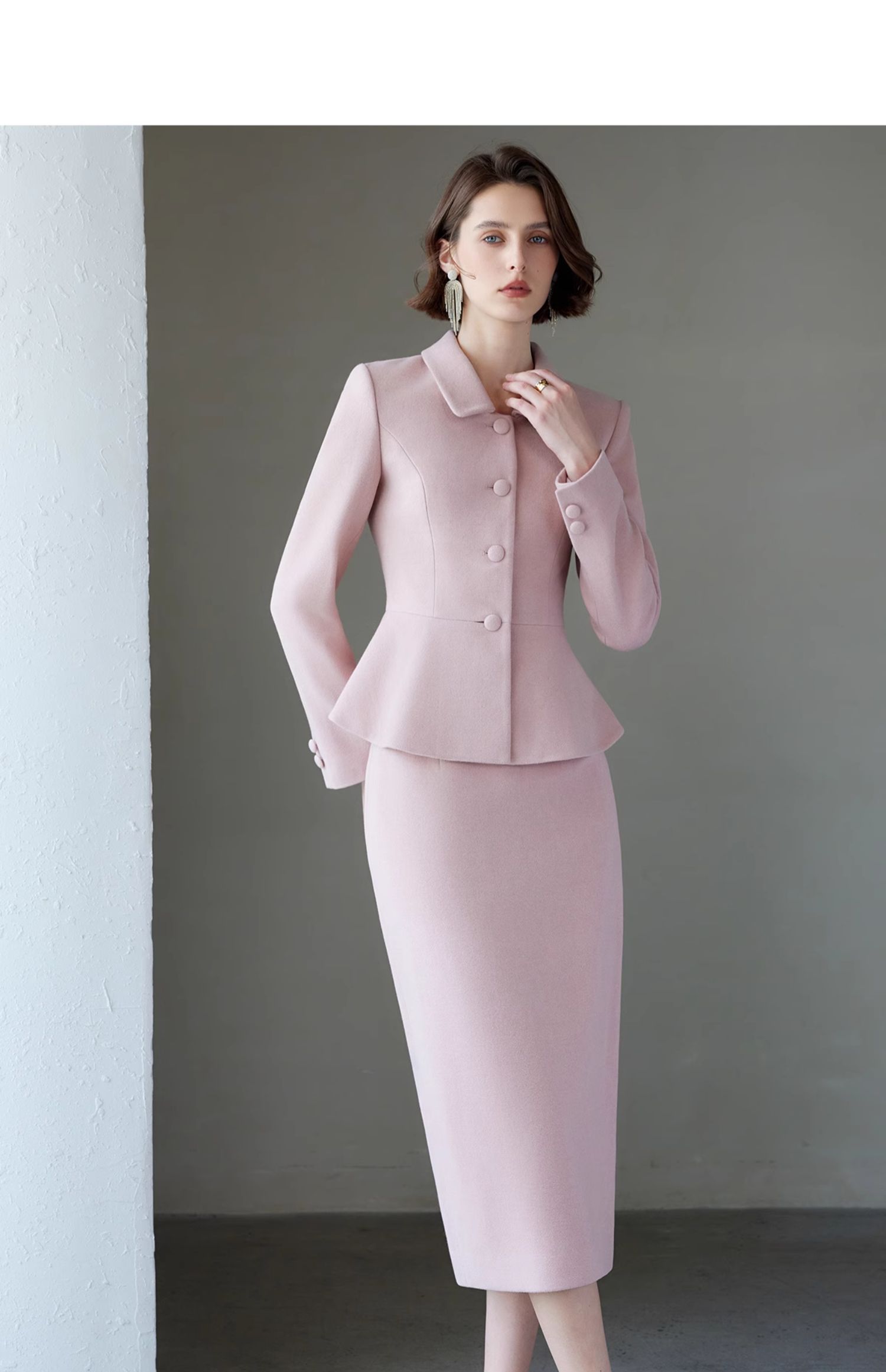 AD韩版名媛范套装女小立领短外套2024新款冬季毛呢粉色中长款裙子
