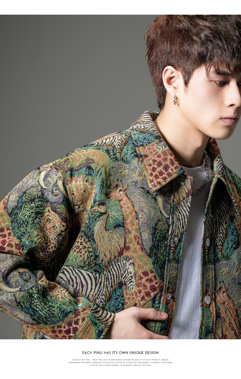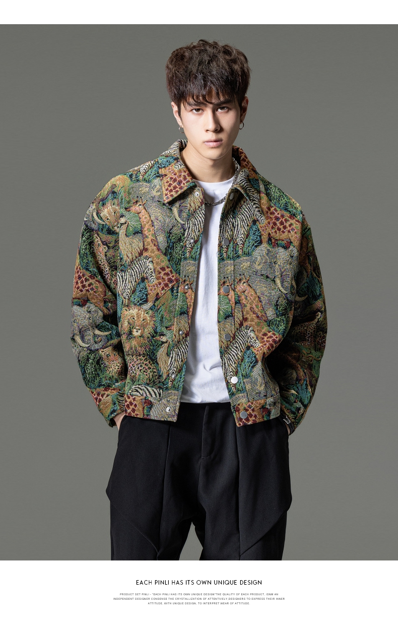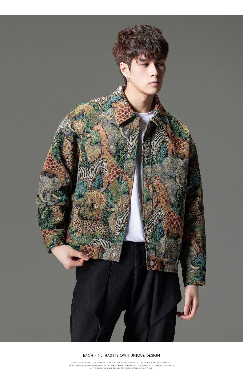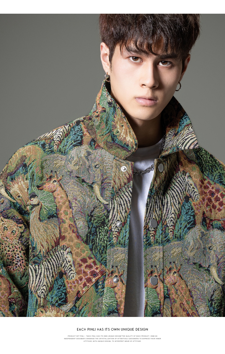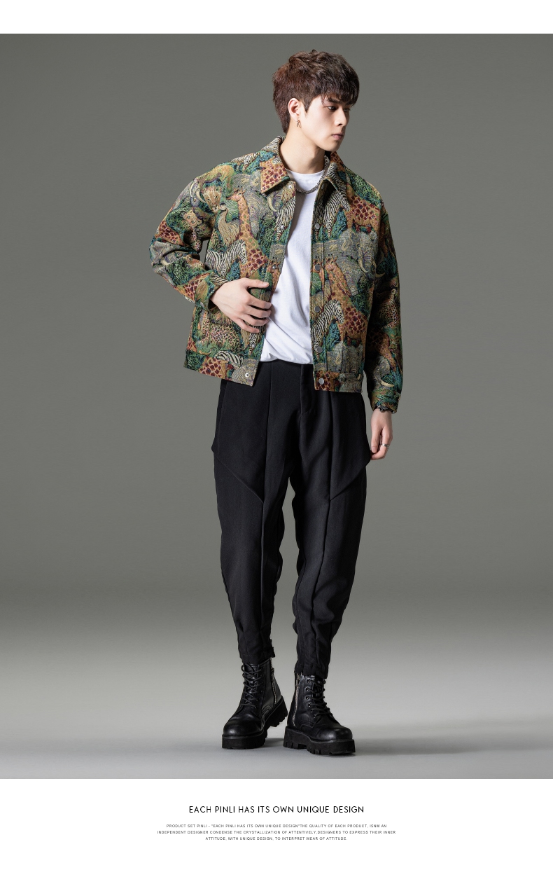PINLI品立春季新品新中式提花夹克国潮休闲潮牌宽松版男外套B233104103