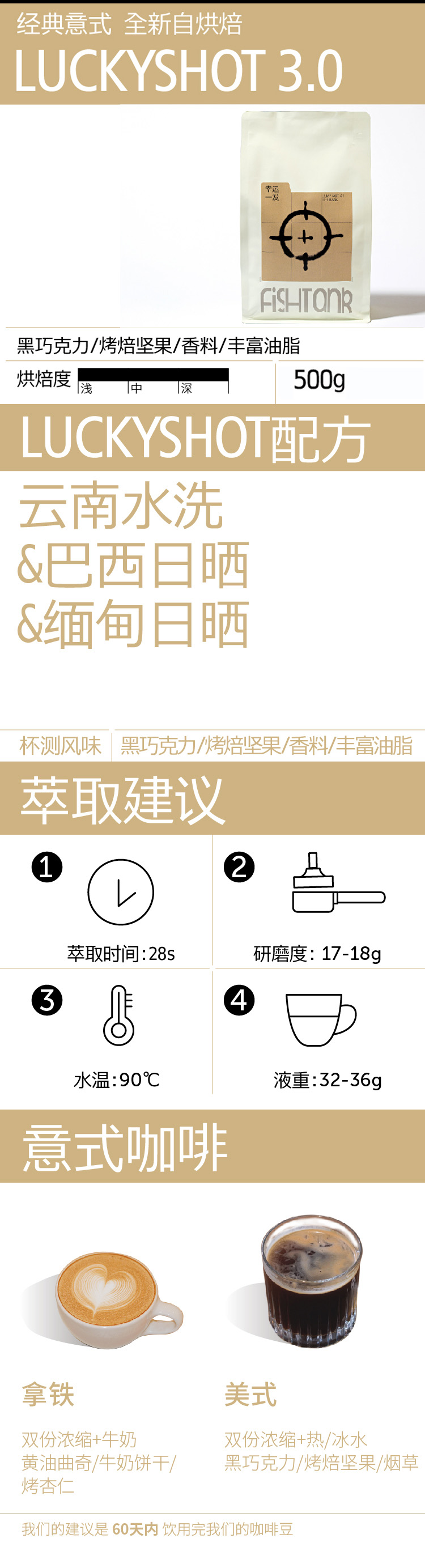 luckyshot 经典深烘意式咖啡豆500g