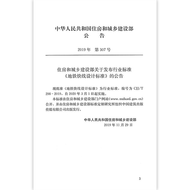 CJJ/T298-2019地铁快线设计标准