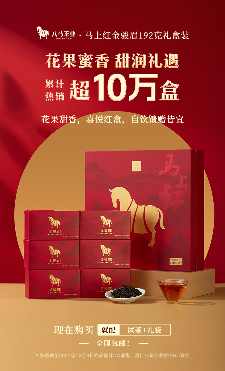八马茶业 | 武夷原产金骏眉特级红茶马上红高端茶礼盒装192g