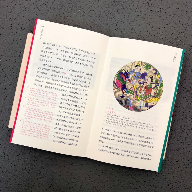 在我国的古代艺术宝库里,便于流传的绘画大致可分两种:一种是装裱成卷轴或册页等形式的;中国画。这类绘画,大多悬挂在王府大第的楼阁厅堂,或赏玩于达官贵人的香几案头,供文人雅士清赏,而且观者还须净手息声,屏气静观。欣赏完毕,则卷折起来,收藏于宝箧画库,封锁存好,以防损坏遗失。它的内容,除了一些工笔人物、楼台界画,多半是水墨山水、竹兰花卉或写意人物等等。在形式上讲究笔墨情趣、书法题句、金石印章;其用笔之简洁,意境之深妙,十足珍贵。与此相反,还有一种绘画,不需装裱成轴、折叠成册,而直接粘贴在室内墙壁上或门窗上。每到岁末,各地的城镇集市便纷纷悬挂,供广大劳动群众围观共赏,评议选购。一年过去,陈旧褪色了,还可再去画市择优购买、随意更新。这就是我们常说的;民间年画。民间年画起源很早,但过去在我国的美术史论中,没有这一画种名词。从古人笔记中,得知民间年画在宋代叫;纸画(见孟元老《东京梦华录》);在明代叫;画贴(见刘若愚《酌中志》);清道光三十年(1850)李光庭《乡言解颐》中提到:;扫舍之后,便贴年画,稚子之戏耳。此为年画命名之始。但苏州仍称年画为;画张(见顾禄《清嘉录》),北京则称年画为;画片(见富察敦崇《燕京岁时记》)。各地民间更是称呼不一:浙江叫;花纸,福建称;神符,北京又叫;卫抹子,四川则叫;斗方。到清光绪年间(18751908),天津杨柳青齐健隆画店印制宣传爱国御侮、发愤图强、维新自救等题材的新画样,如;劝办学堂;女子爱国;满汉平等;不知自量等,画面刻有;改良年画字样。当时在北京的进步人士彭翼仲注意到这些新画样,在他创办的《京话日报》上,写了一篇赞勉的文章,文中提到:年画要随时改良,除去迷信发财的,换些革新生活的,以正风俗、长志气,辅助社会教育之改良。辛亥革命后,直隶教育司社会科印行了一些石印画,有《破除迷信图》《家禽守信》《阿豺》《程门立雪》等,画面题词之后,印有;改良年画一方形印记。从此,年画这一名词逐渐统一而定了下来。我国年画产地分布很广,且远销亚洲各地,由此而促进了这一艺术形式的发展。据收集到的作品看,有四川的绵竹、成都、夹江、梁平、简阳、北碚,陕西的凤翔、汉中、洋县、蒲城,河南的灵宝、开封、朱仙镇,安徽的阜阳、亳县、宿县、太和、歙县,山西的临汾、大同、长治、丰镇,浙江的余杭、绍兴,江苏的徐州、南京、扬州、无锡、南通、苏州,上海,福建的漳州、泉州、福安、福鼎,广西的桂林、南宁,台湾的台南,广东的潮州、佛山,贵州的贵阳,江西的九江、南昌,湖北的汉阳、孝感、均州、黄陂,湖南的邵阳,甘肃的天水,山东的聊城、平度、高密、潍坊、冠县、堂邑、阳谷,河北的大名、武强、宁河,天津,北京,云南的大理、丽江、中甸、剑川,以及辽宁的沈阳等,共60多个产地。此外还有日本和越南的刻印作品。越南民间印刻的内容与形式多似我国四川绘制的年画,如《凭烈新刻老鼠娶亲图》,举凡鼓吹仪仗、执礼亲友、骑马新郎、抬轿夫役,都由一群老鼠分担,完全是我国传统年画之题材与形式,反映了历史上两国人民之间、民间艺术间的相互往来及影响。民间年画的题材内容多从人民现实生活中酌取素材。此外,也有些历史故事、戏曲小说和寓意吉祥的画样,以及灶马、门神等与岁时活动有关的形式,其中有些带有迷信色彩。再有就是青绿山水、工笔花鸟、博古瓶罐和西洋楼阁等,但为数不多。其中描绘民间现实生活的题材占相当大的比例,亦最受欢迎。