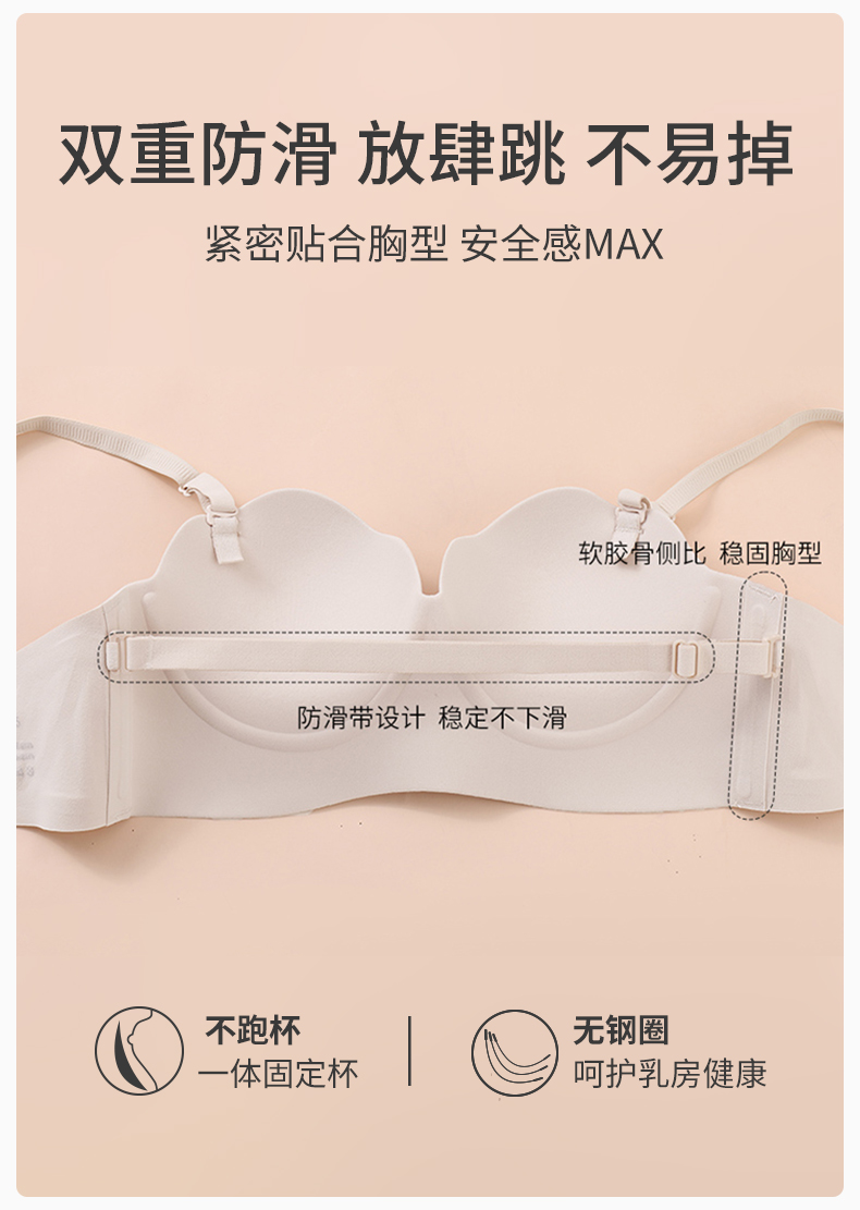 雅黛丽无肩带内衣女小胸聚拢显大无痕文胸无钢圈防滑隐形裹胸美背
