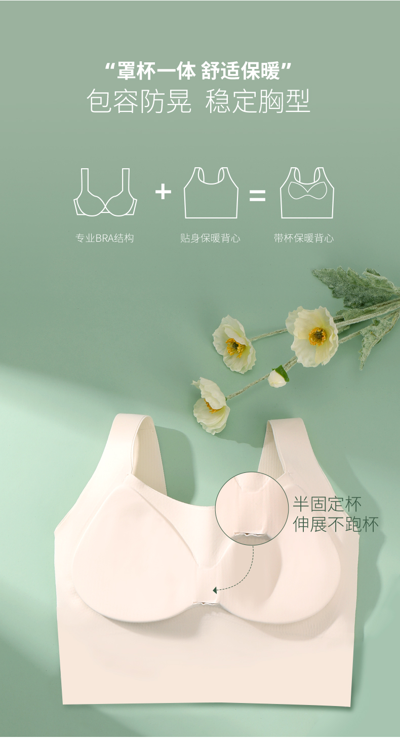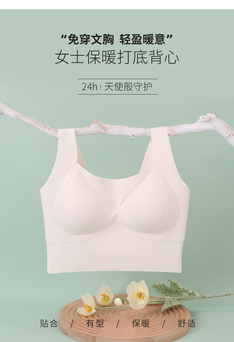 雅黛丽保暖背心带胸垫一体背心式胸罩内衣打底无痕无钢圈免穿文胸