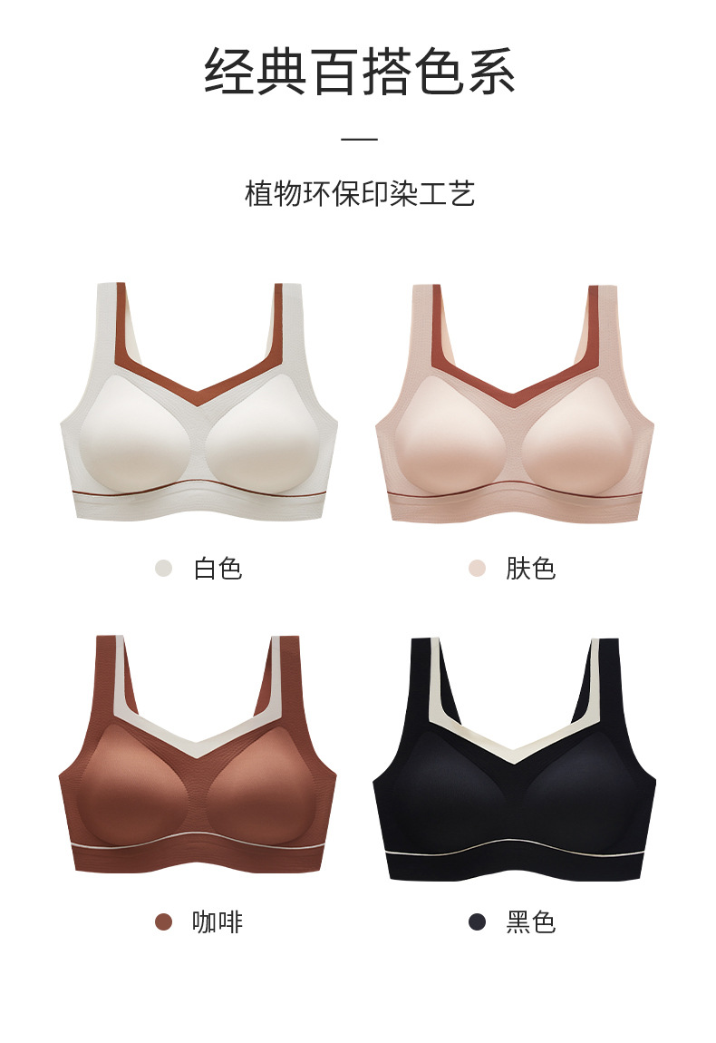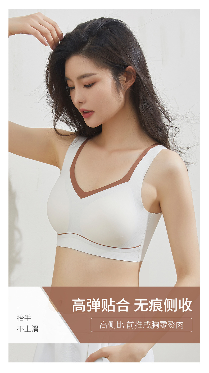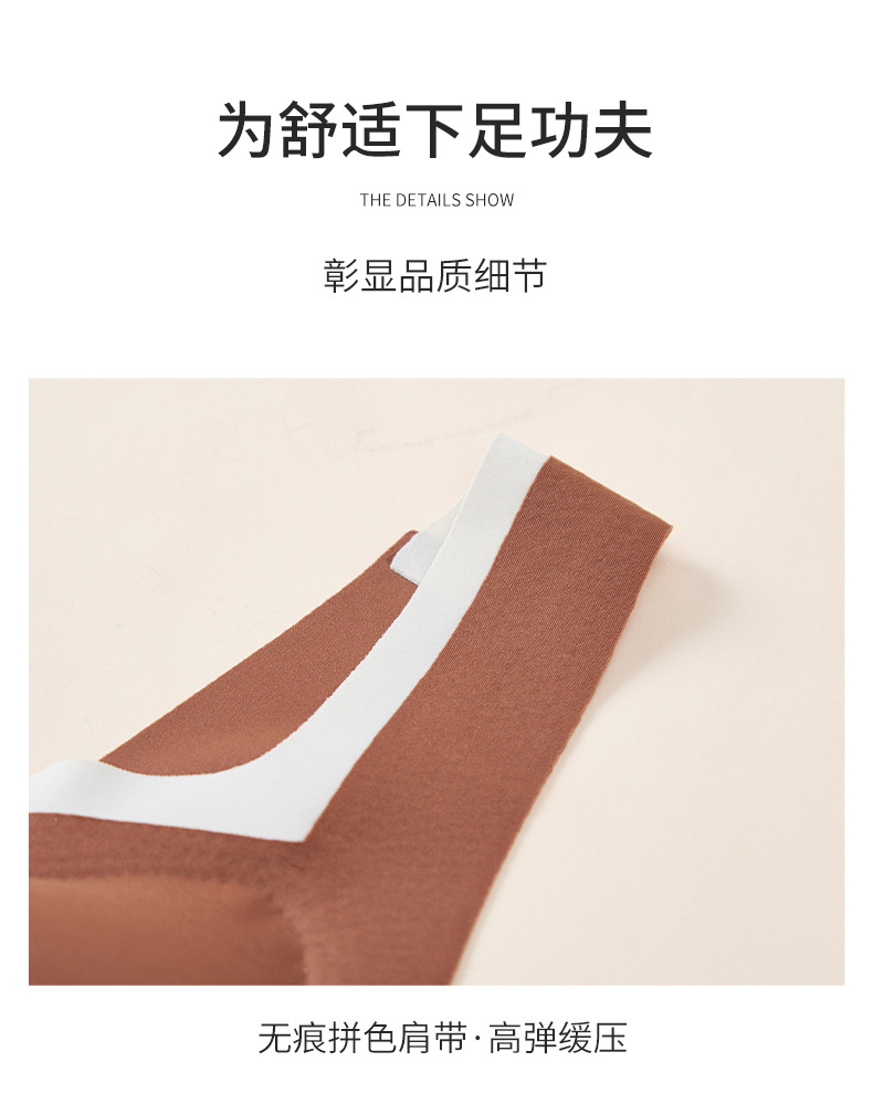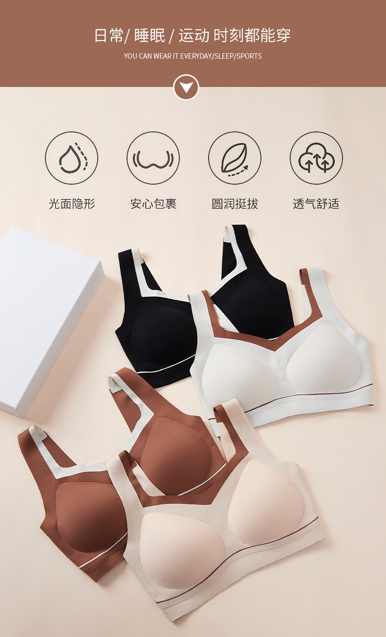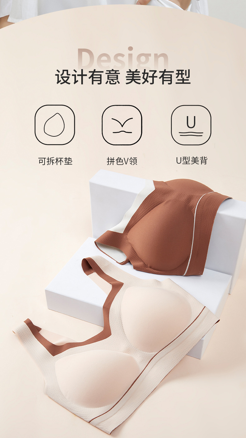 【拼色V领无钢圈❗️无痕内衣女】拼接v领聚拢,文胸背心二合一,春季新款无钢圈文胸舒适高弹透气睡眠内衣经典百搭