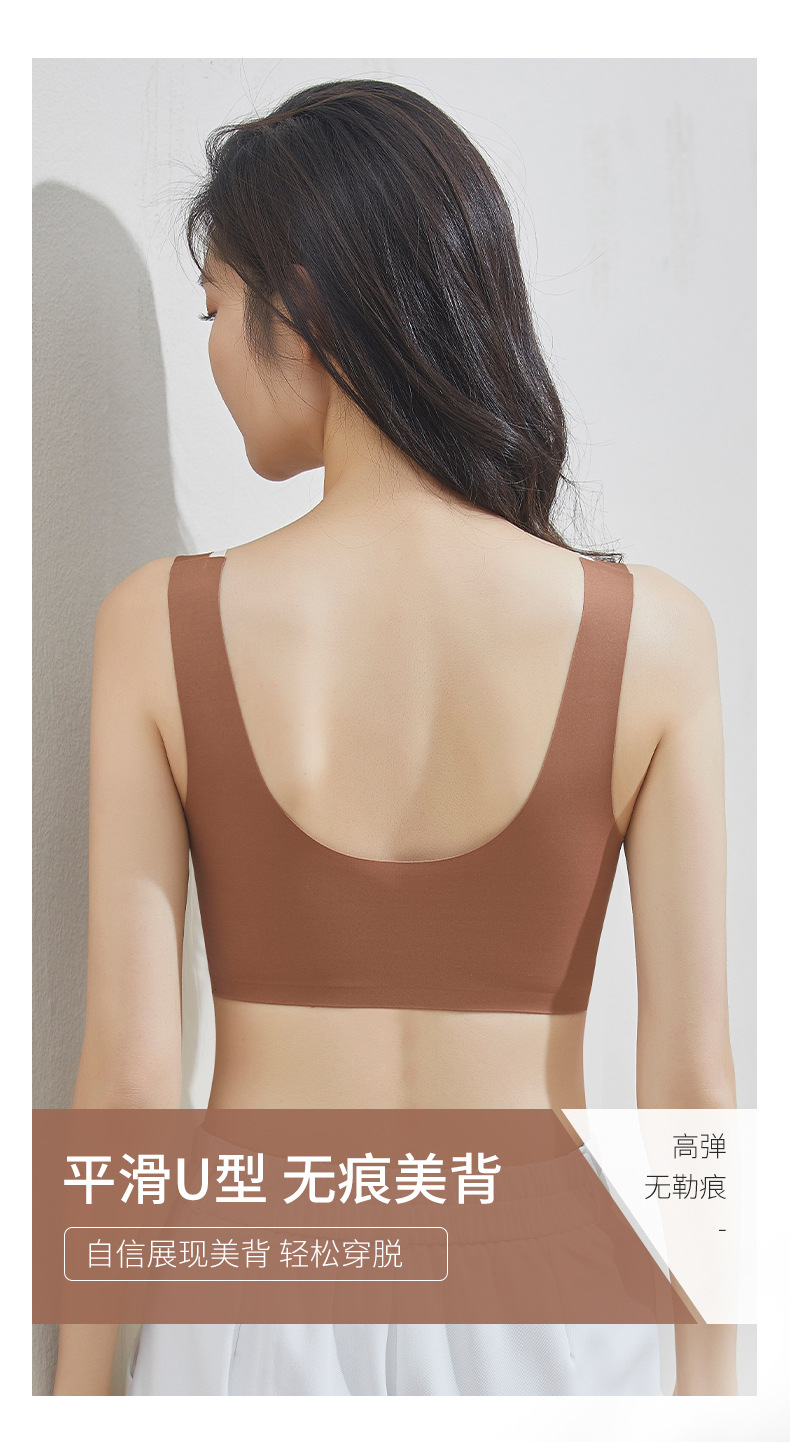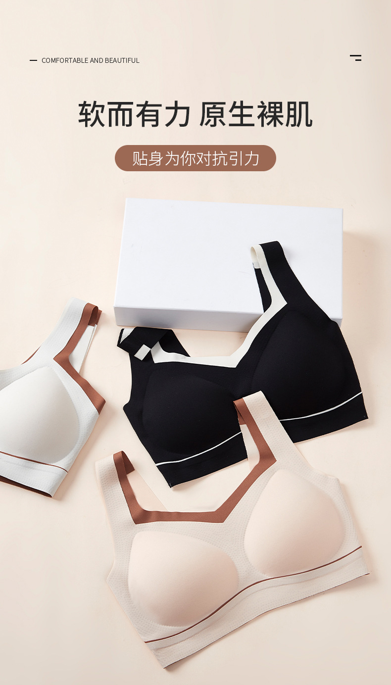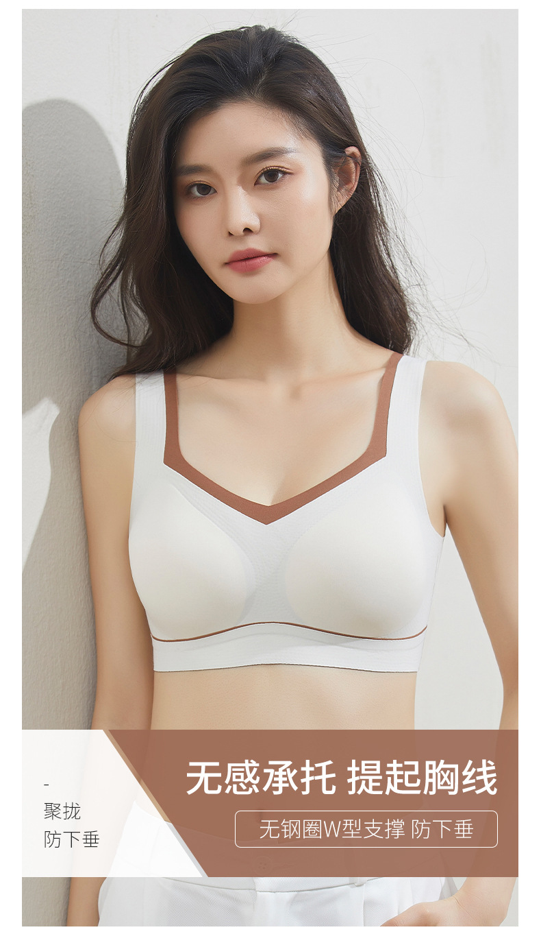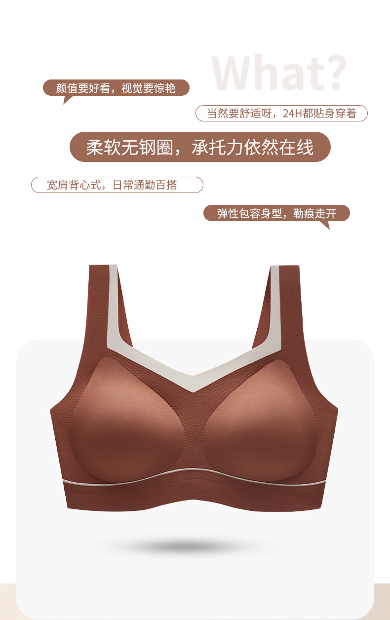 【拼色V领无钢圈❗️无痕内衣女】拼接v领聚拢,文胸背心二合一,春季新款无钢圈文胸舒适高弹透气睡眠内衣经典百搭