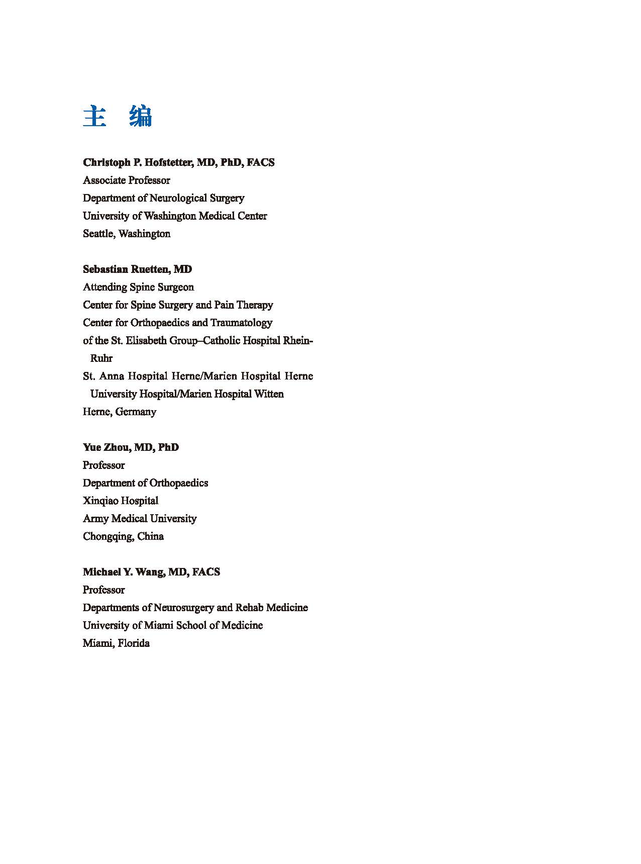 李长青,新桥医院骨科主任,在脊柱外科、创伤骨科等方面有丰富临床诊断治疗经验,科研方向为脊柱退变性疾病尤其是椎间盘组织工程的相关基础与临床研究,擅长脊柱外伤、退行性变、脊柱肿瘤、侧弯矫形、尤其擅长脊柱微创等外科治疗。