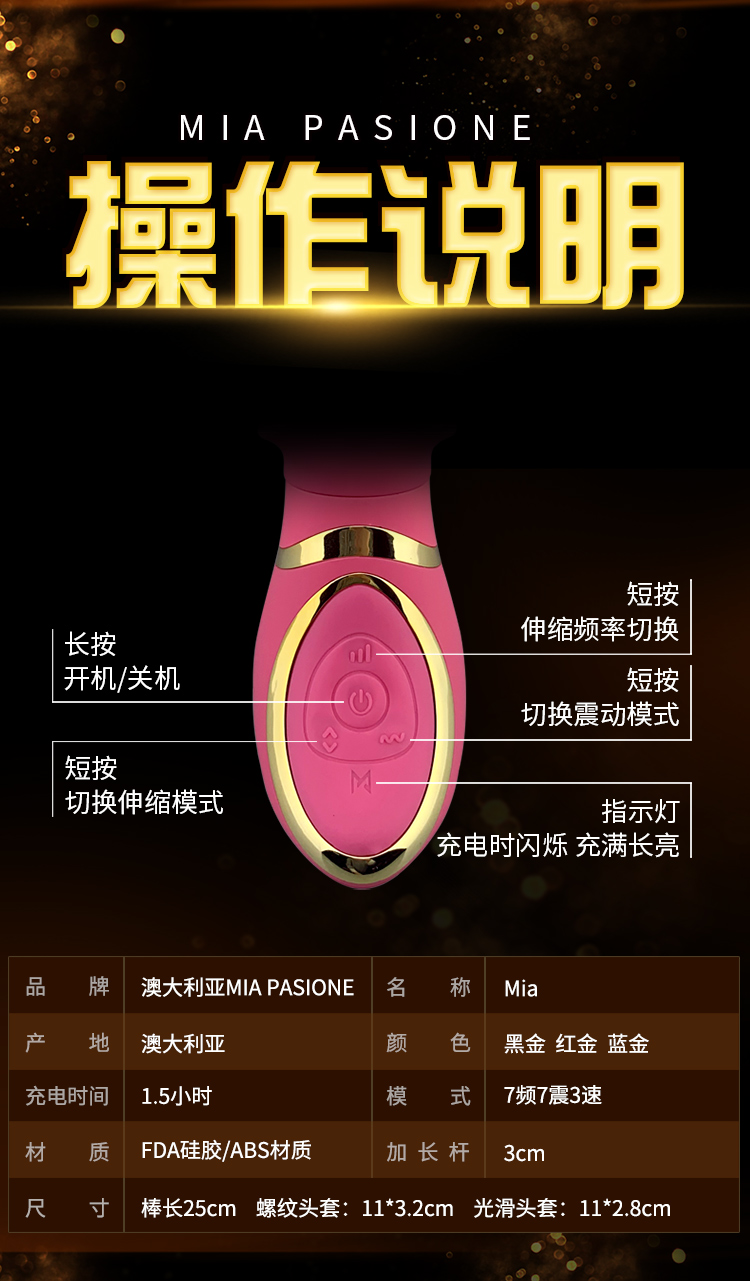MIA震动棒G点炮机女用自慰器伸缩按摩震动自动抽插情趣成人性用品