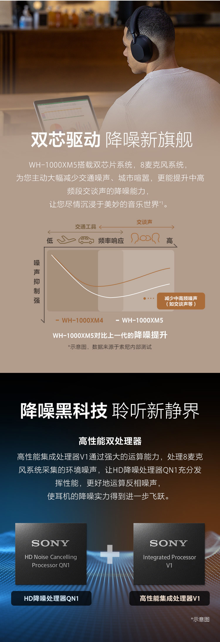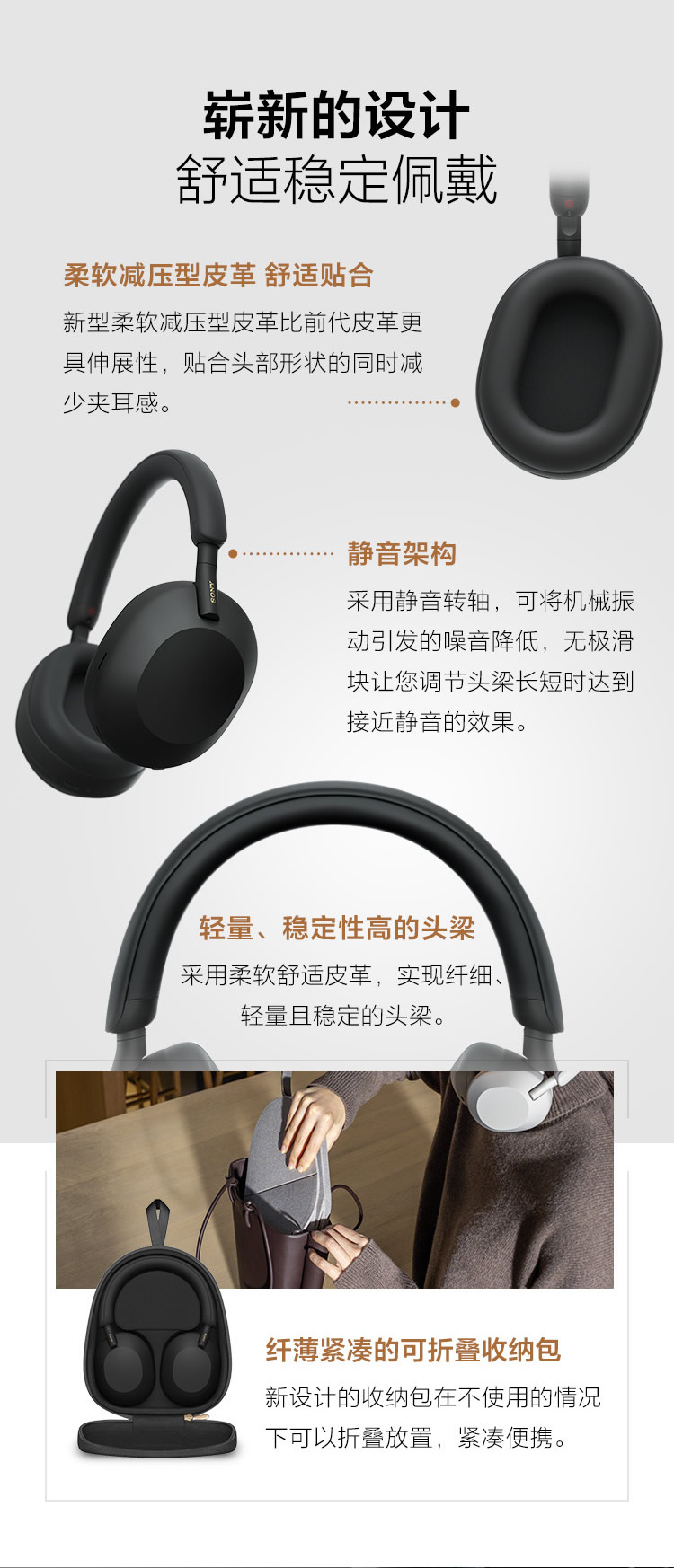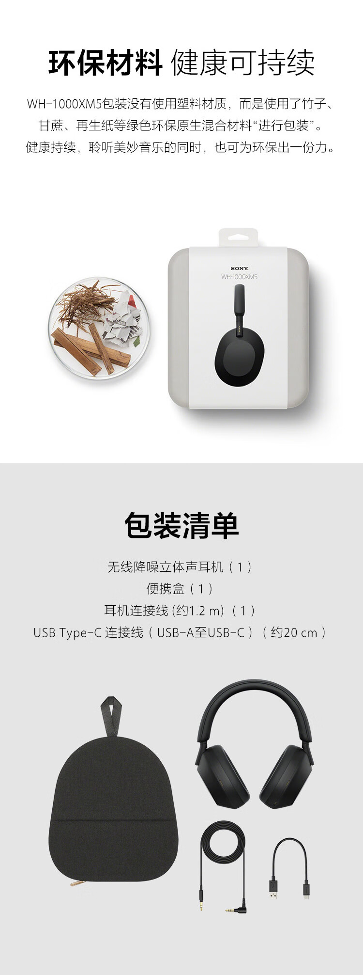 索尼(SONY)WH-1000XM5 头戴式无线降噪耳机 双芯驱动 降噪新旗舰索尼xm5