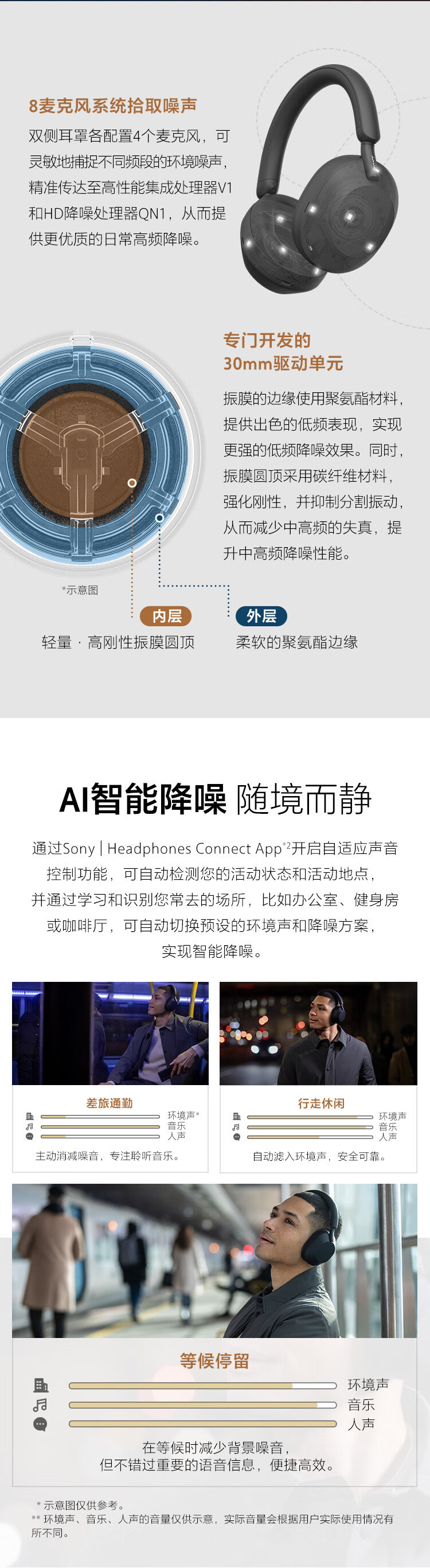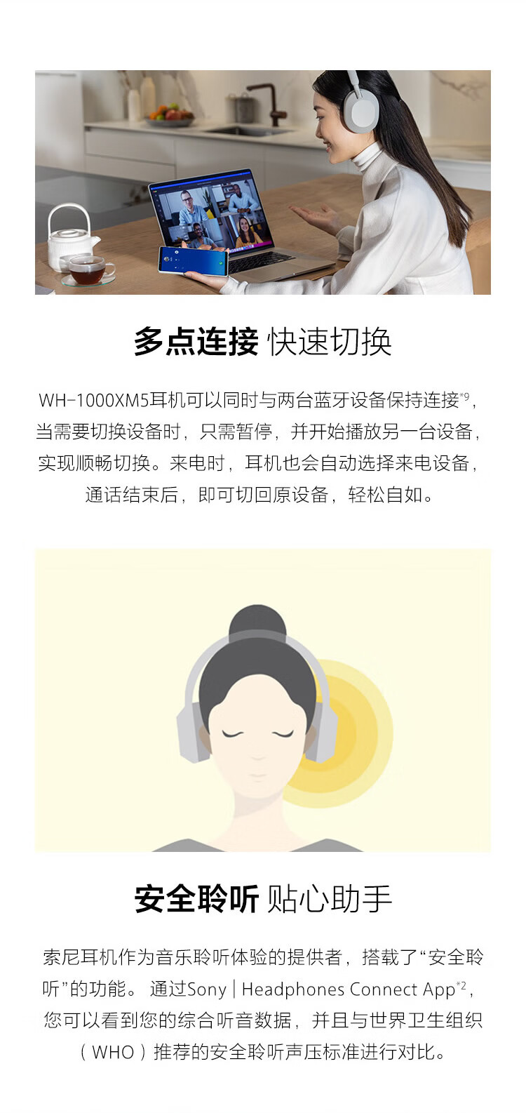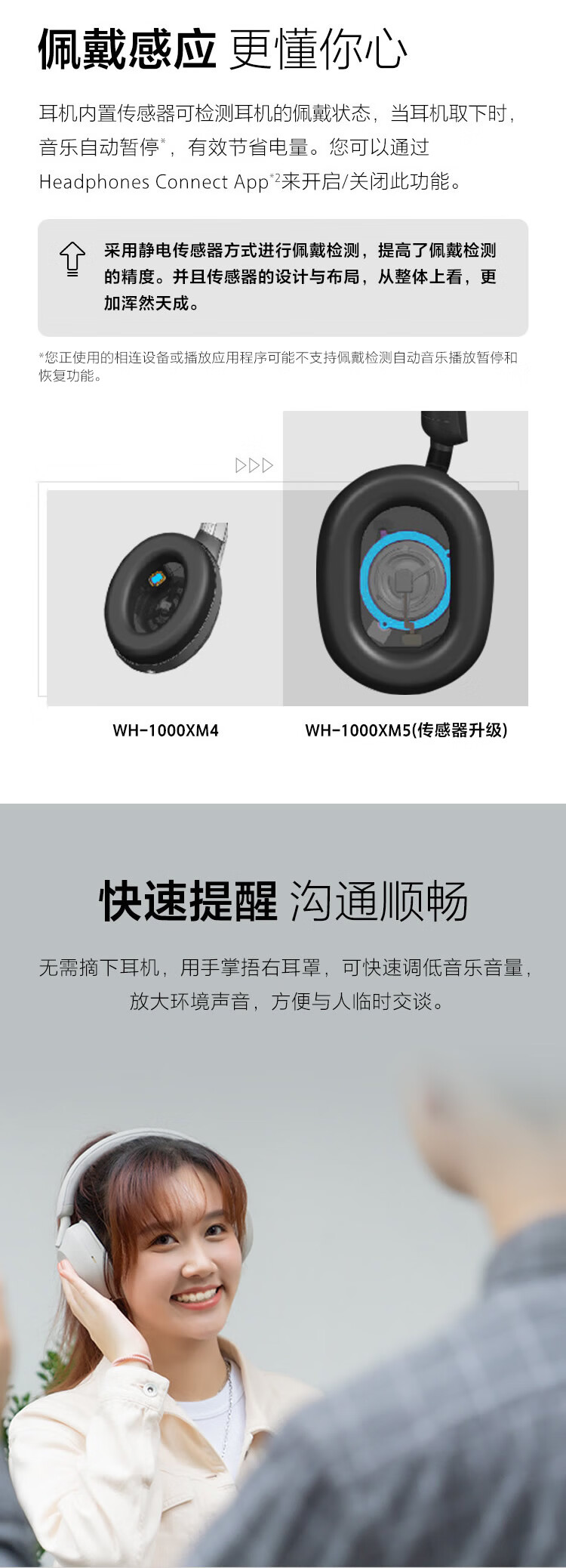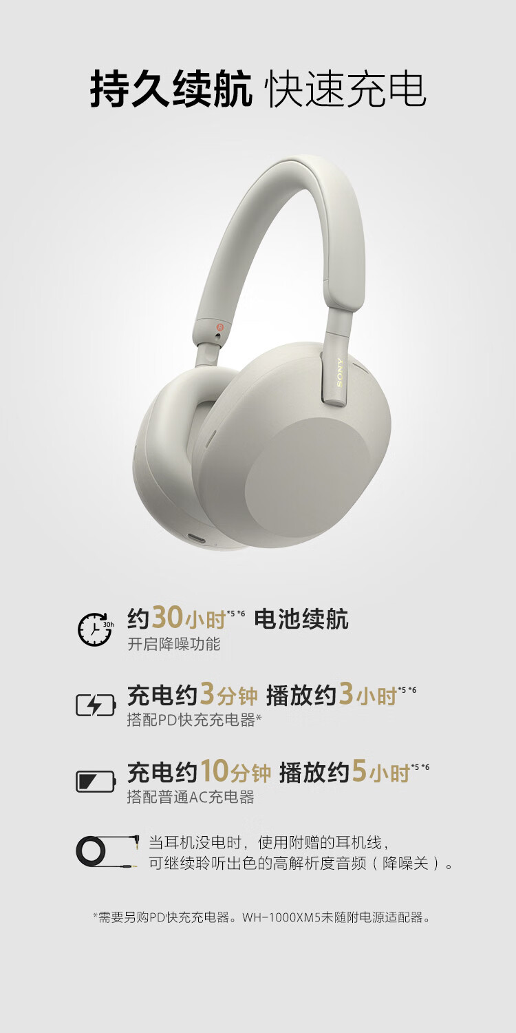 索尼(SONY)WH-1000XM5 头戴式无线降噪耳机 双芯驱动 降噪新旗舰索尼xm5