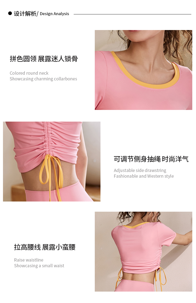 【100元任选4件】跃牌抽绳瑜伽健身短袖DX8913(无胸垫)(清仓产品,非质量问题不支持调换和退款)
