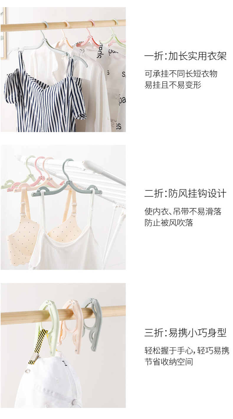 旅行折叠衣架晾衣架防滑挂衣架晾晒衣挂魔术衣挂简易塑料晒衣架/个(随机颜色)
