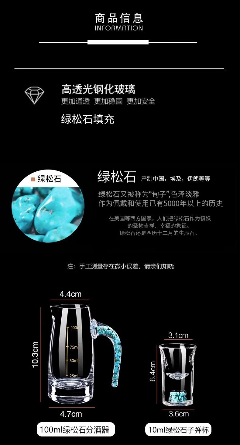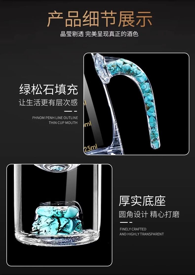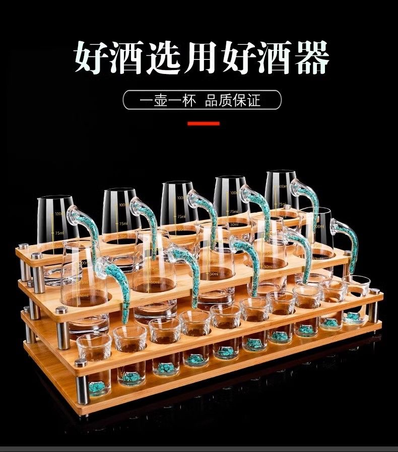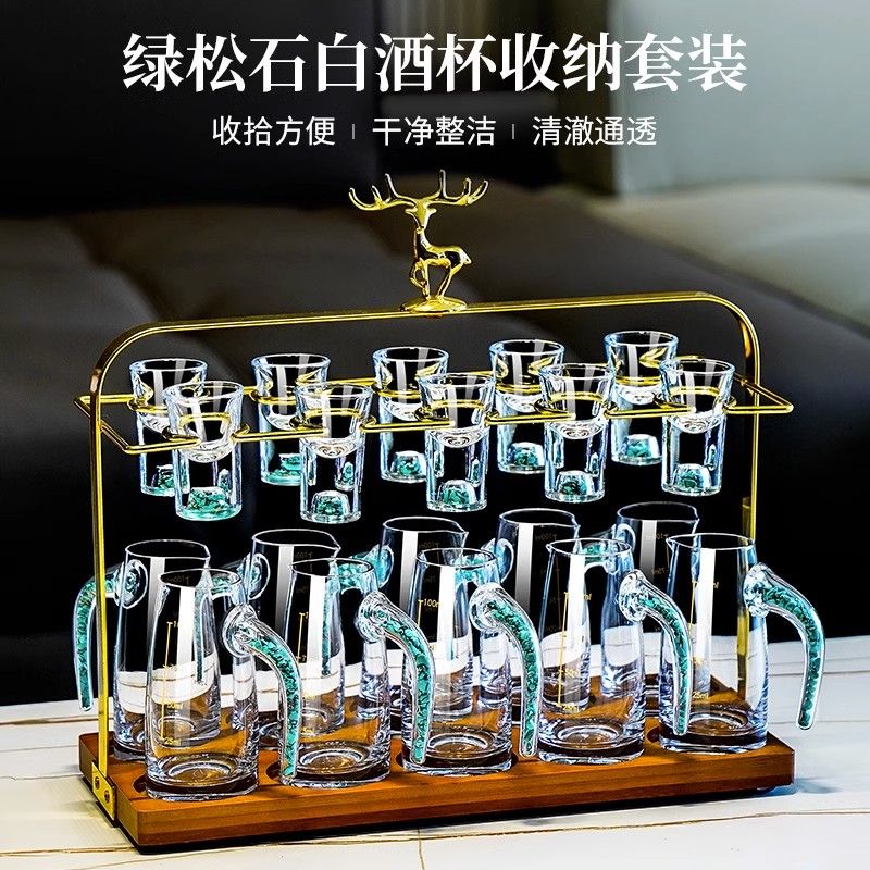 高颜值绿松石白酒杯分酒器杯架套装 轻奢水晶玻璃家用烈酒小酒杯