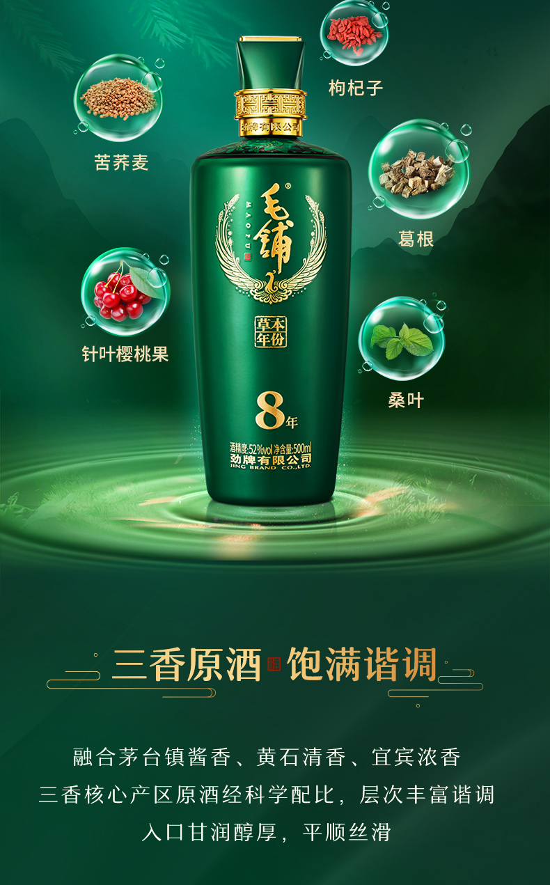 【新品】500ml52度毛铺草本年份酒8年礼盒