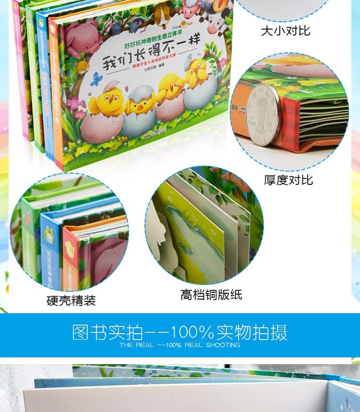 2、有趣互动的工艺——采用多种立体工艺,让阅读具备直观的立体参与感与体验感,将奥妙难懂的科普知识赋予趣味性,让孩子加强动手动脑的能力,引导孩子自主学习。