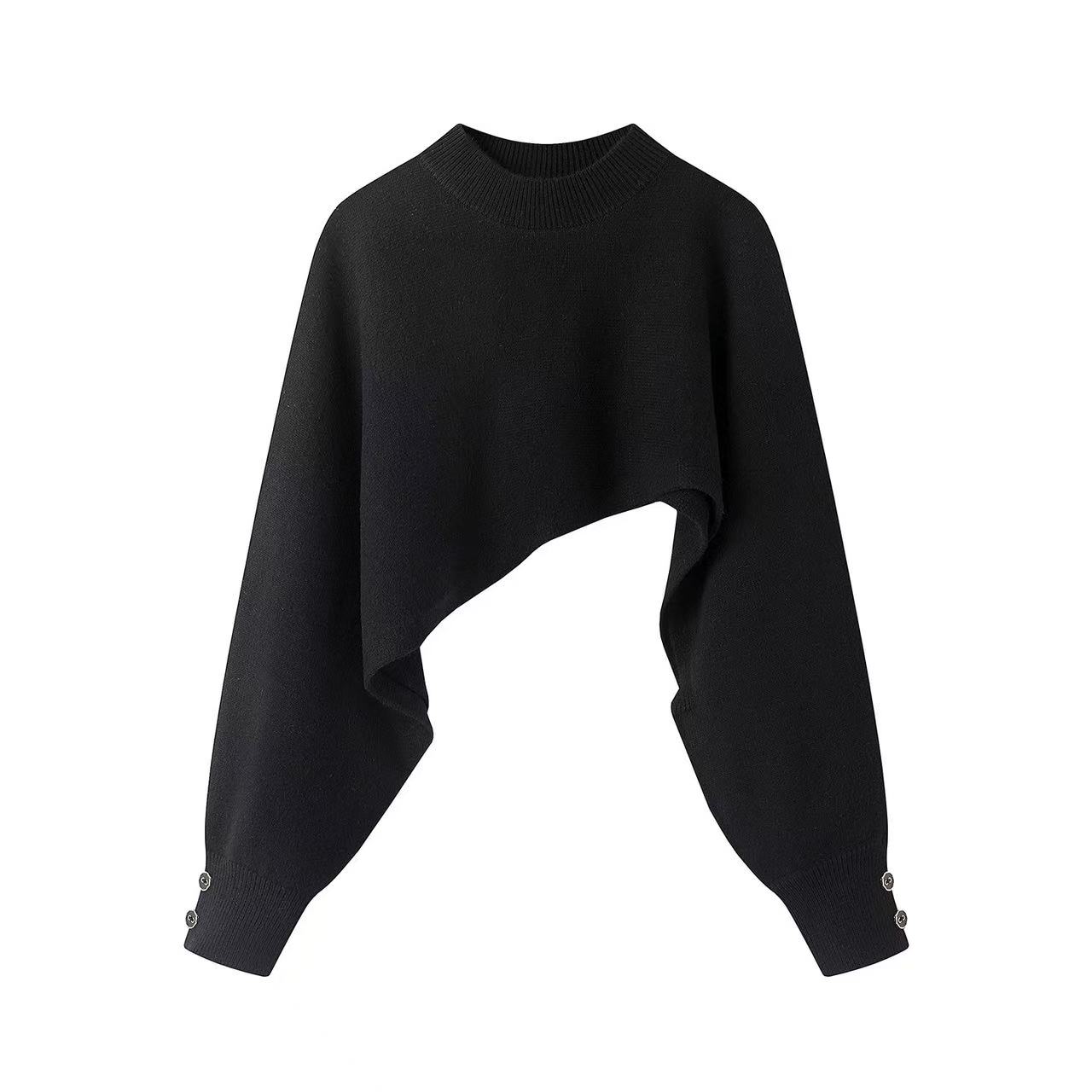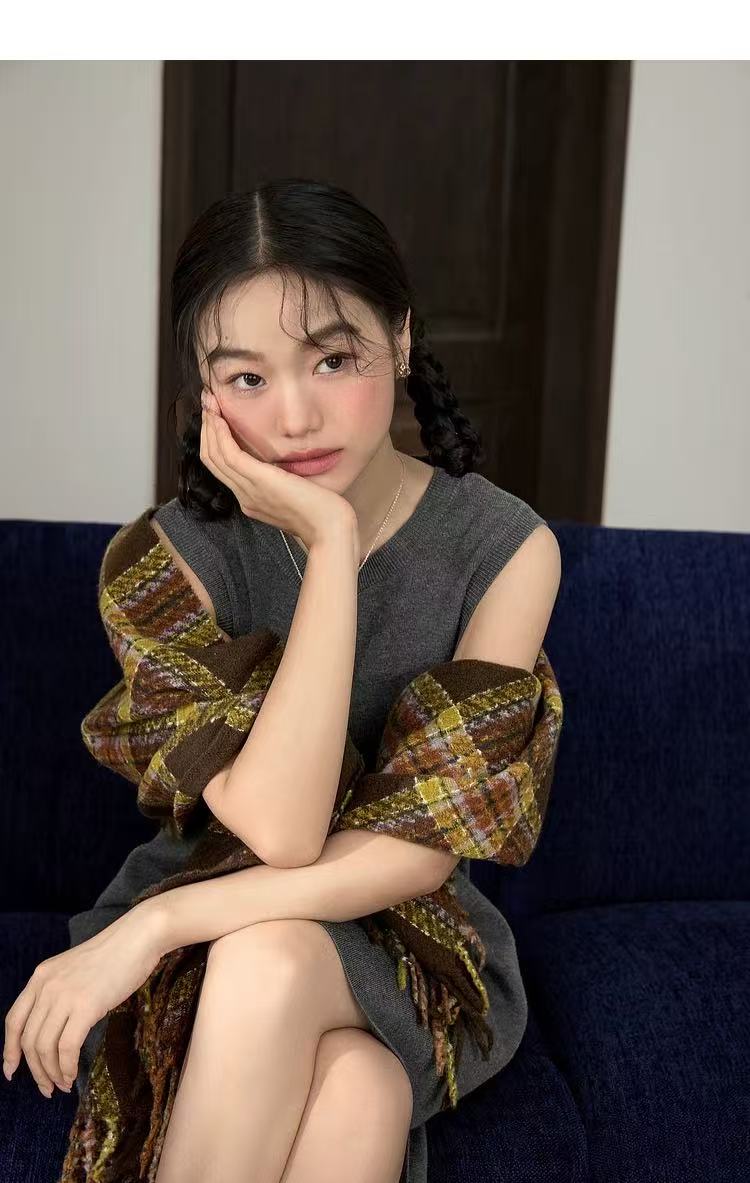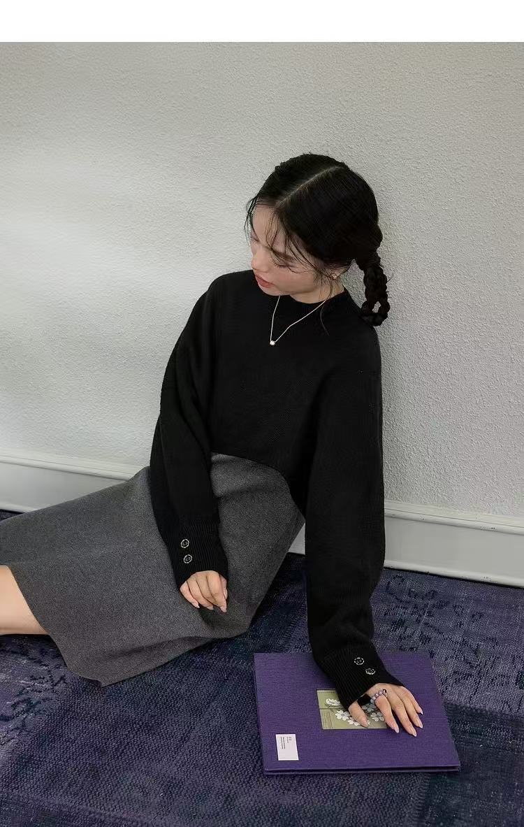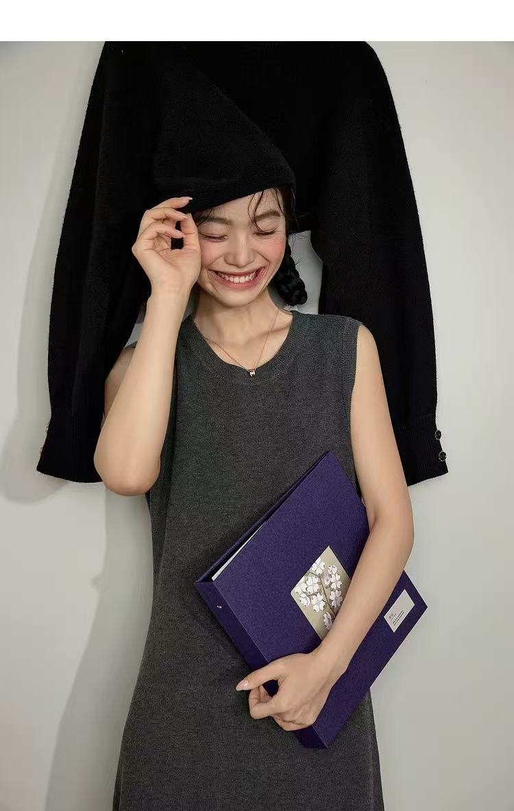 灰色不规则收腰显瘦连衣裙女25秋冬新款针织披肩毛衣两件套装(上衣)