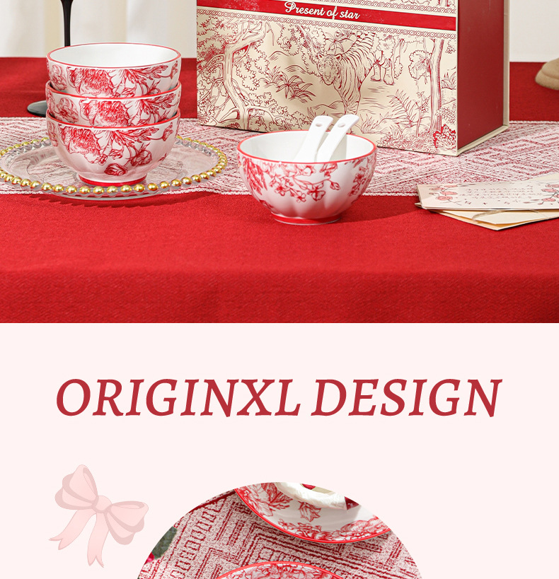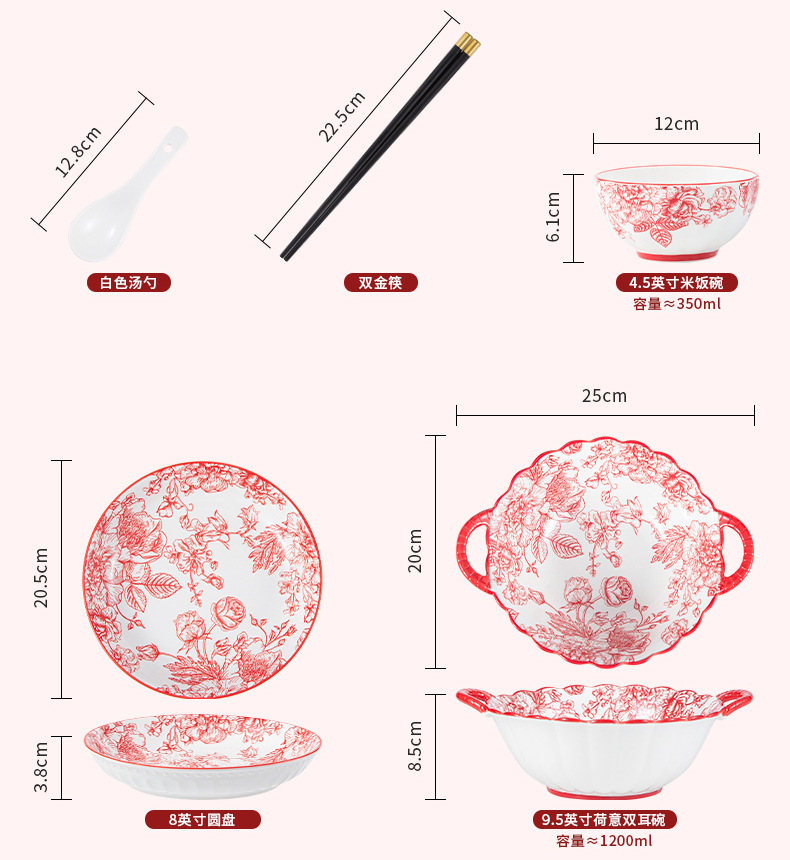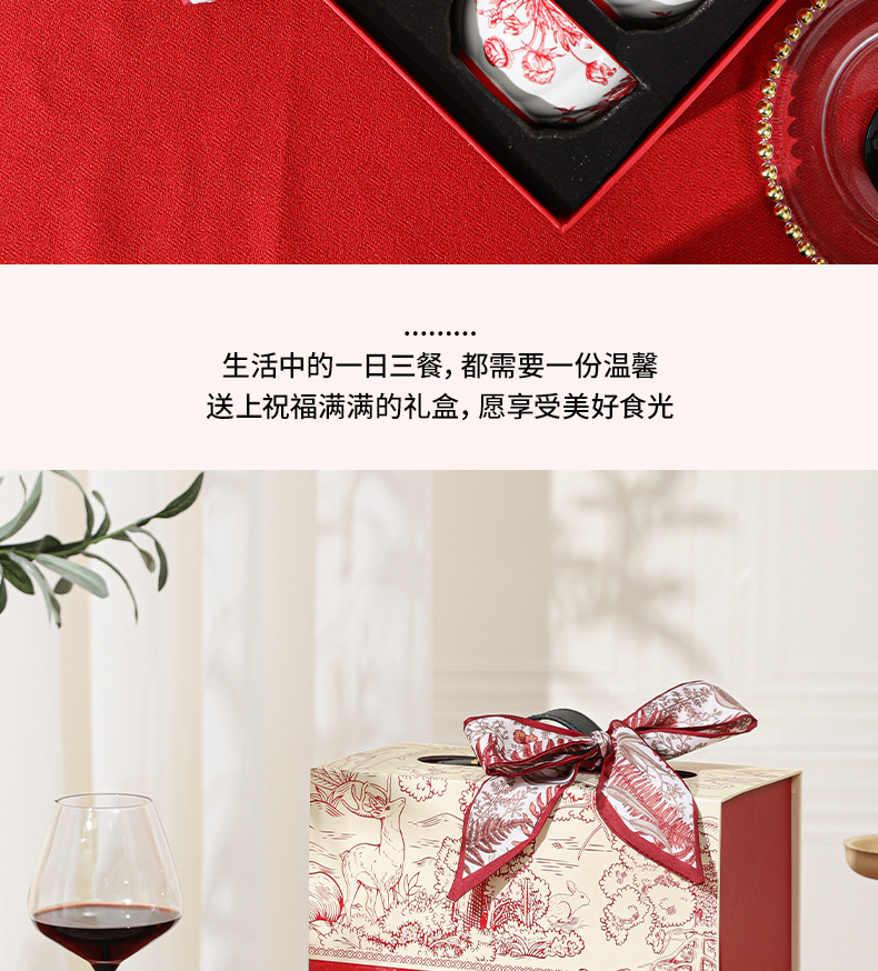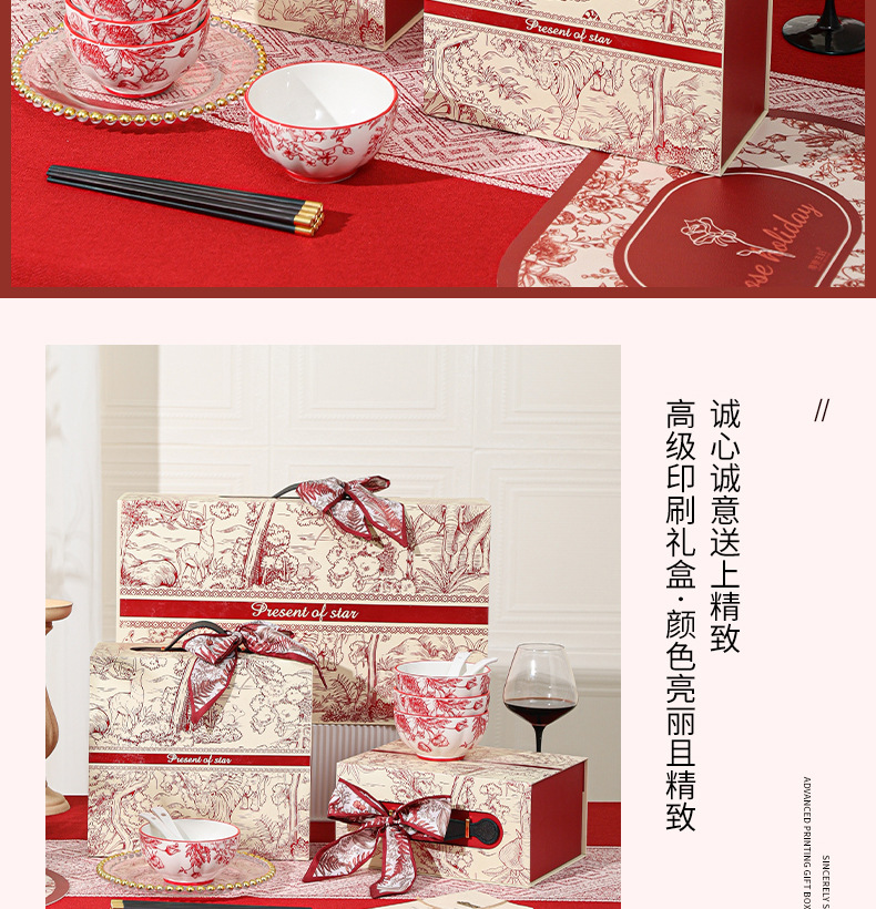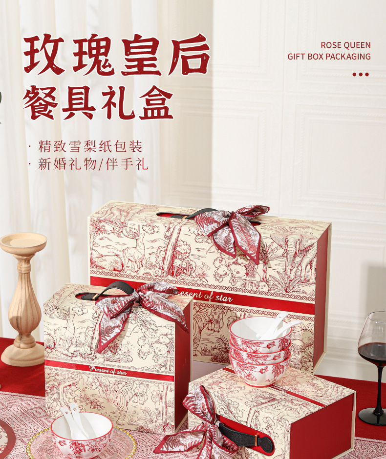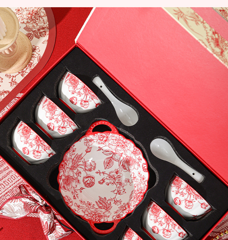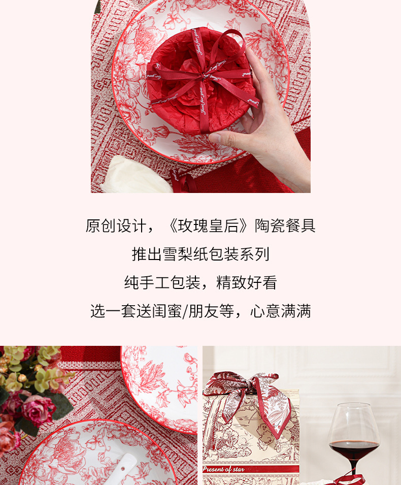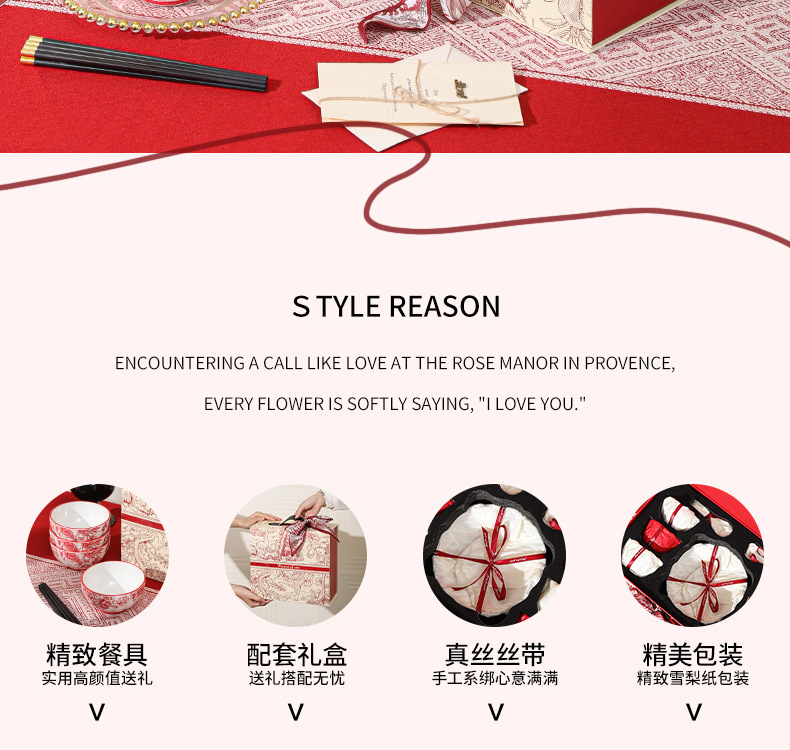 【新中式❗️釉下彩陶瓷餐具套装】生活中的一日三餐,都需要一份温馨 送上祝福满满的礼盒,愿享受美好食光!礼品碗精品红玫瑰餐具套装家用乔迁商务活动