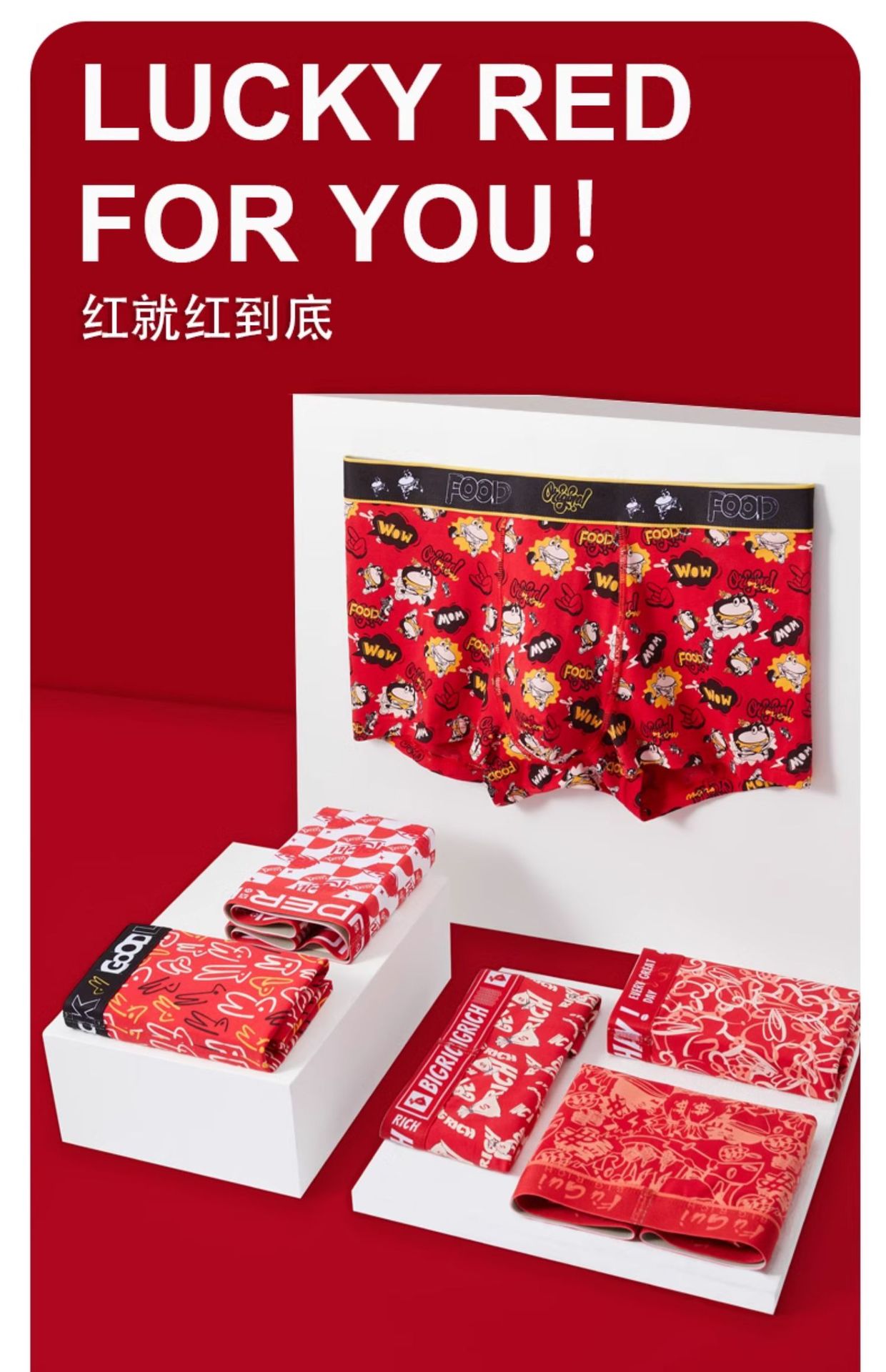 【红色由我定义❗️花样男生内裤礼盒】高支数透气软质棉,强力抗jun干爽透气,高弹不束腰松弛有度,立体空间无拘无束,纯棉四角裤衩平角短裤头本命年结婚送男友礼物龙QQ