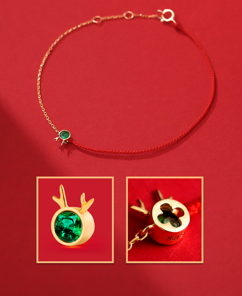 【祈愿吉品】一鹿有你手链祖母绿18k金