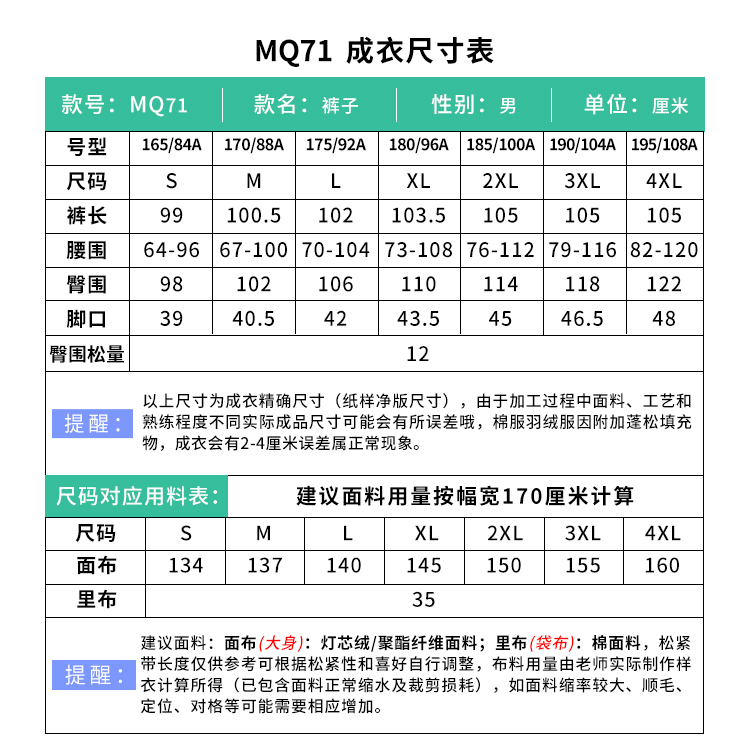 裁缝学苑MQ71直筒仿灯芯绒长裤子纸样男装松紧腰柳叶档裤子样板
