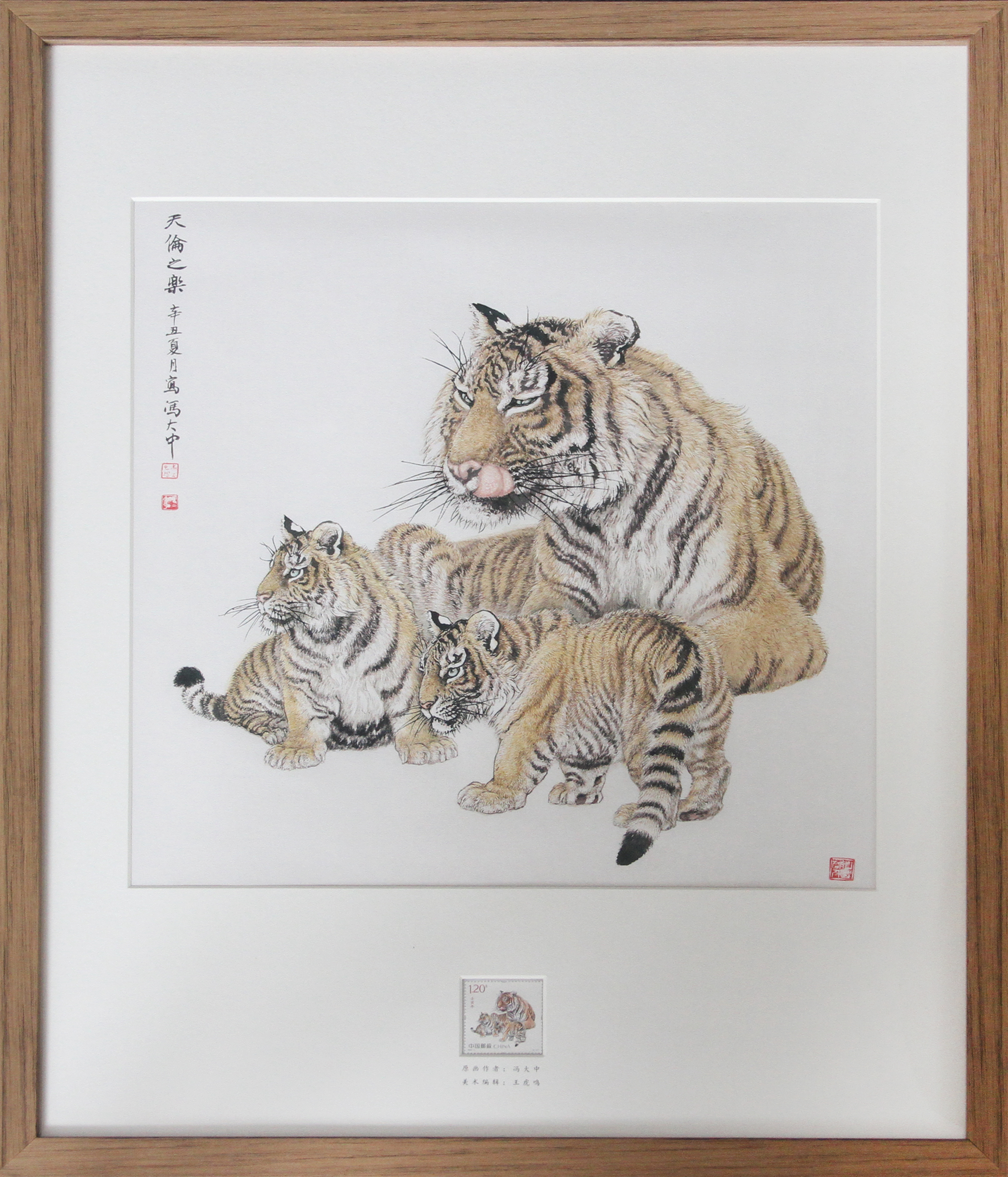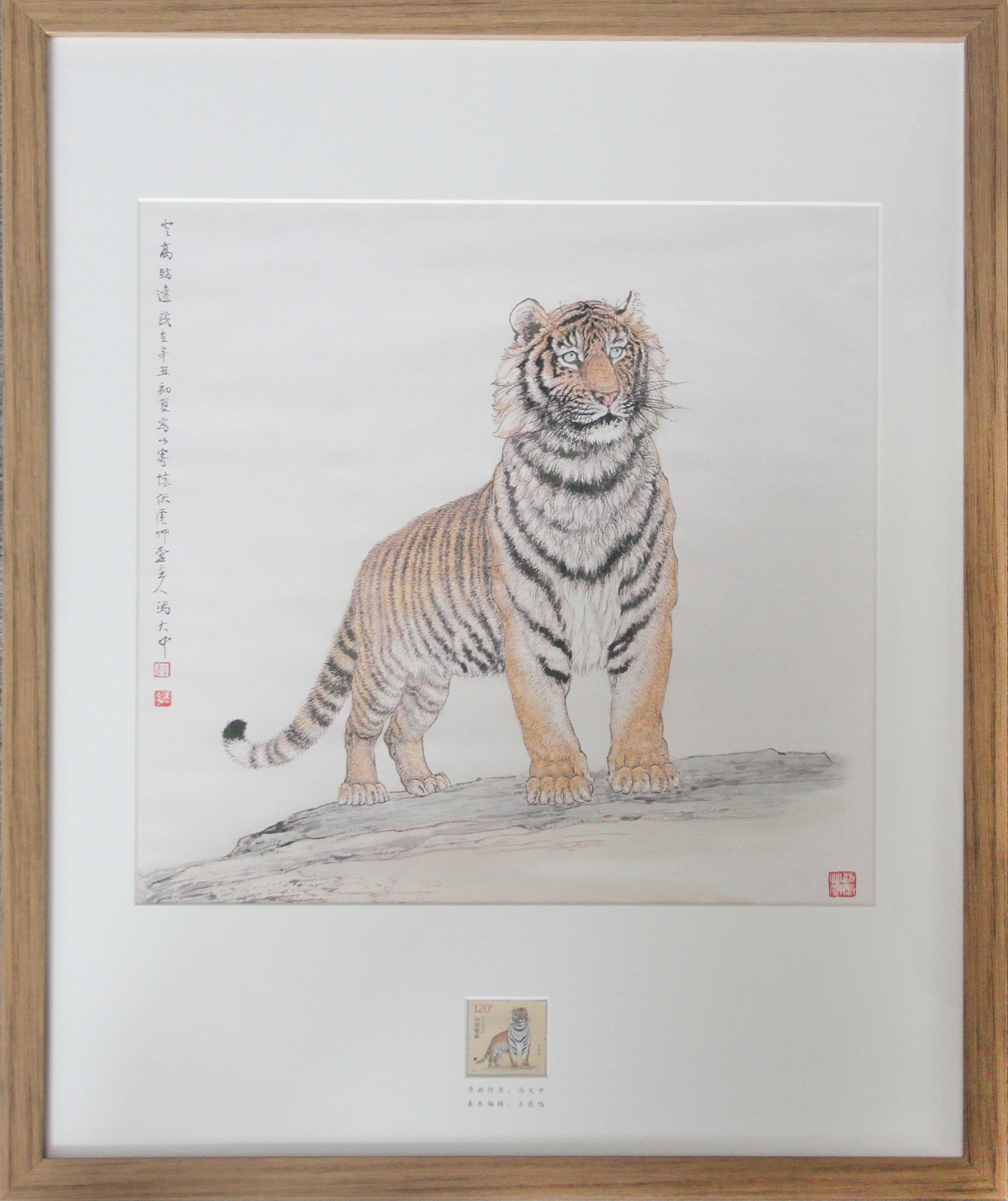 两位大家联手匠心之作,有“天下第一虎”美誉的冯大中先生原画复制+著名邮票设计家王虎鸣亲自操刀设计。