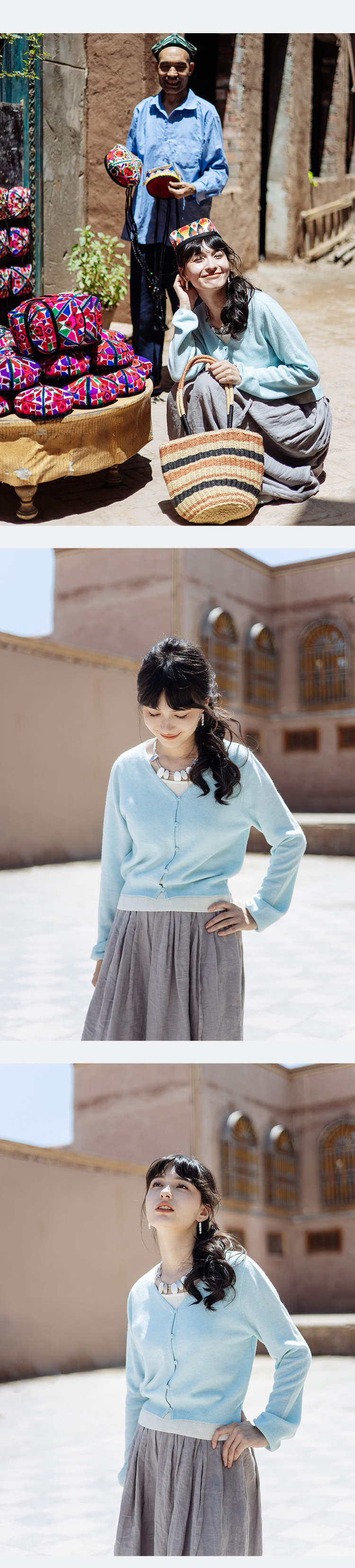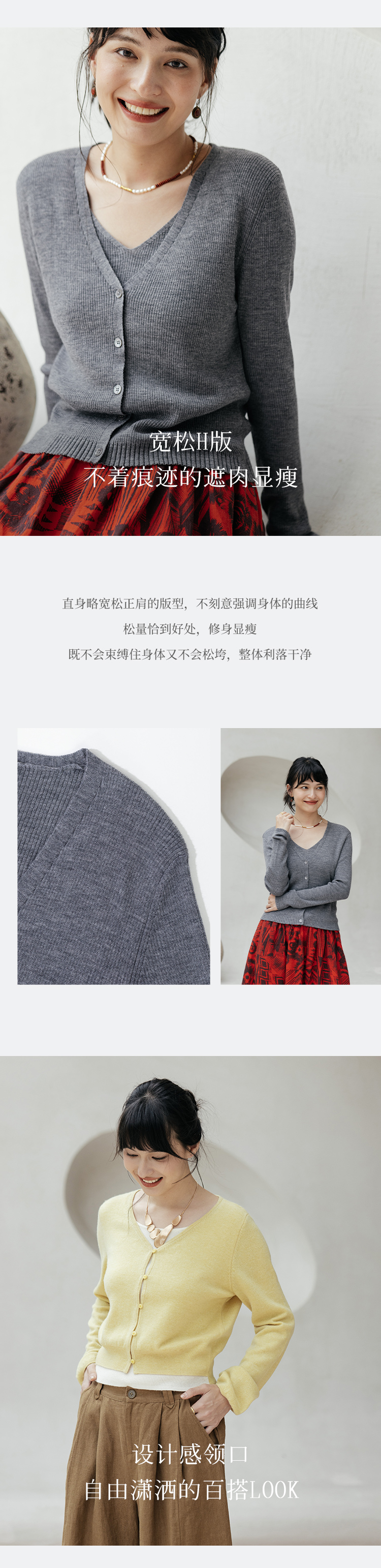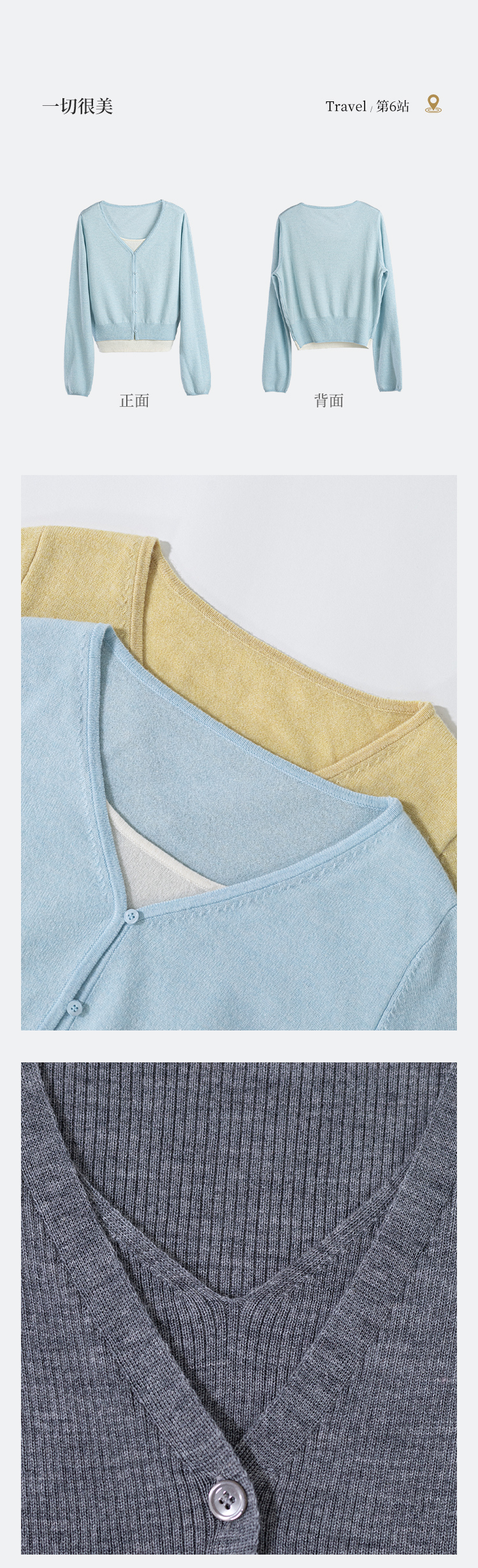 绽放旅行女装599朵/早秋假两件拼接V领套头宽松长袖羊毛针织开衫