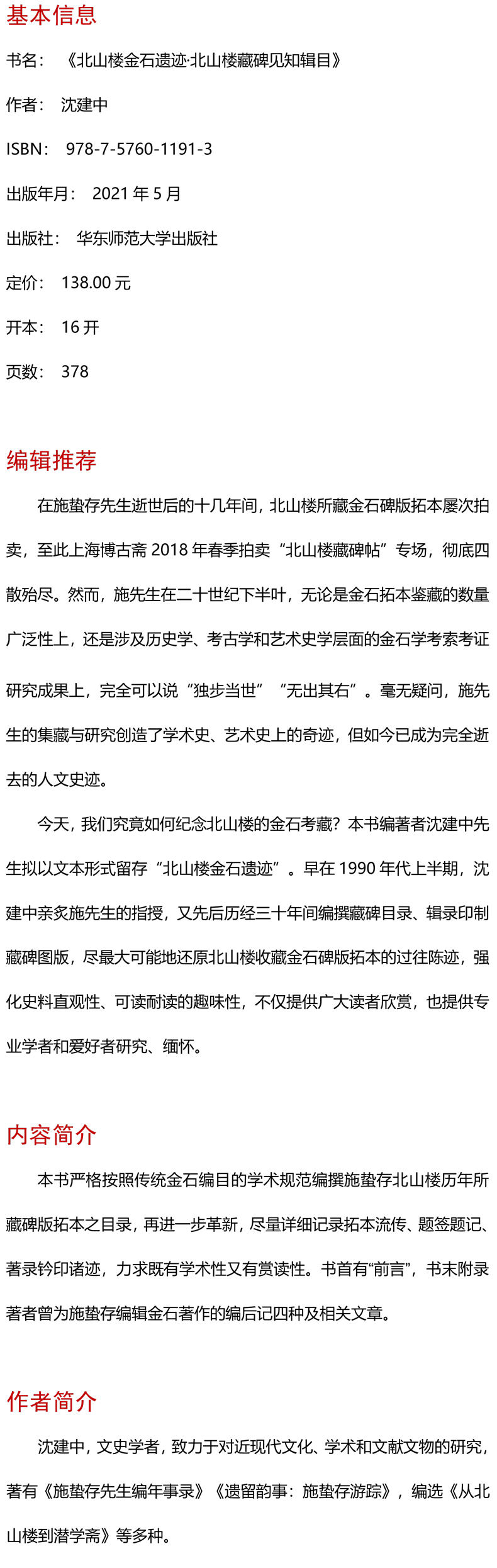 北山楼金石遗迹 北山楼藏碑见知辑目 文史大家施蛰存北山楼金石遗迹 历年所藏周秦至清碑版拓本目录全编