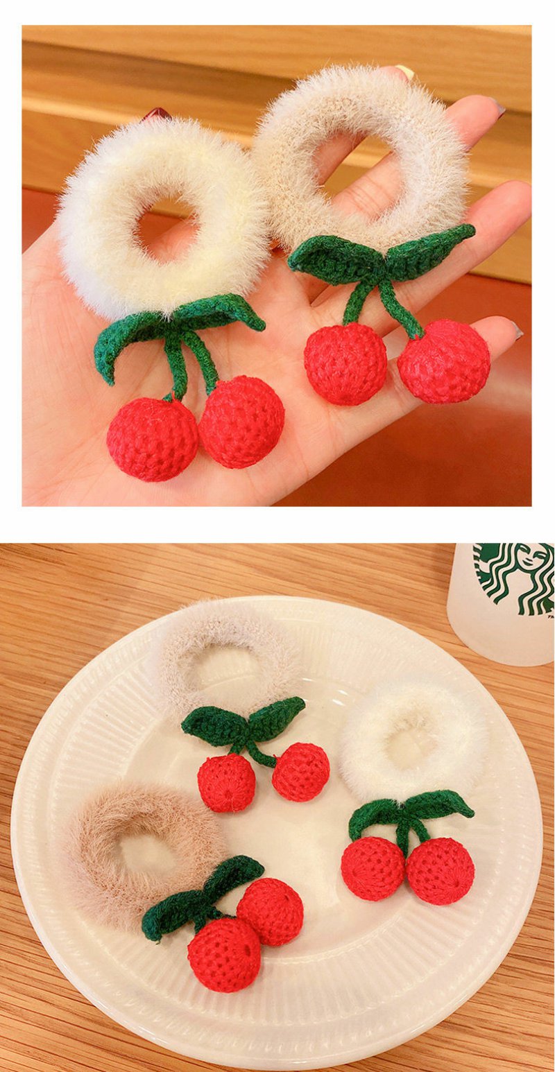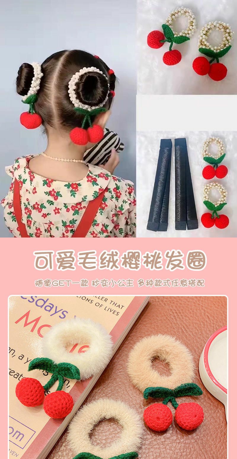 女童毛绒樱桃发圈新款不伤发弹性好小女孩发饰韩国网红头绳