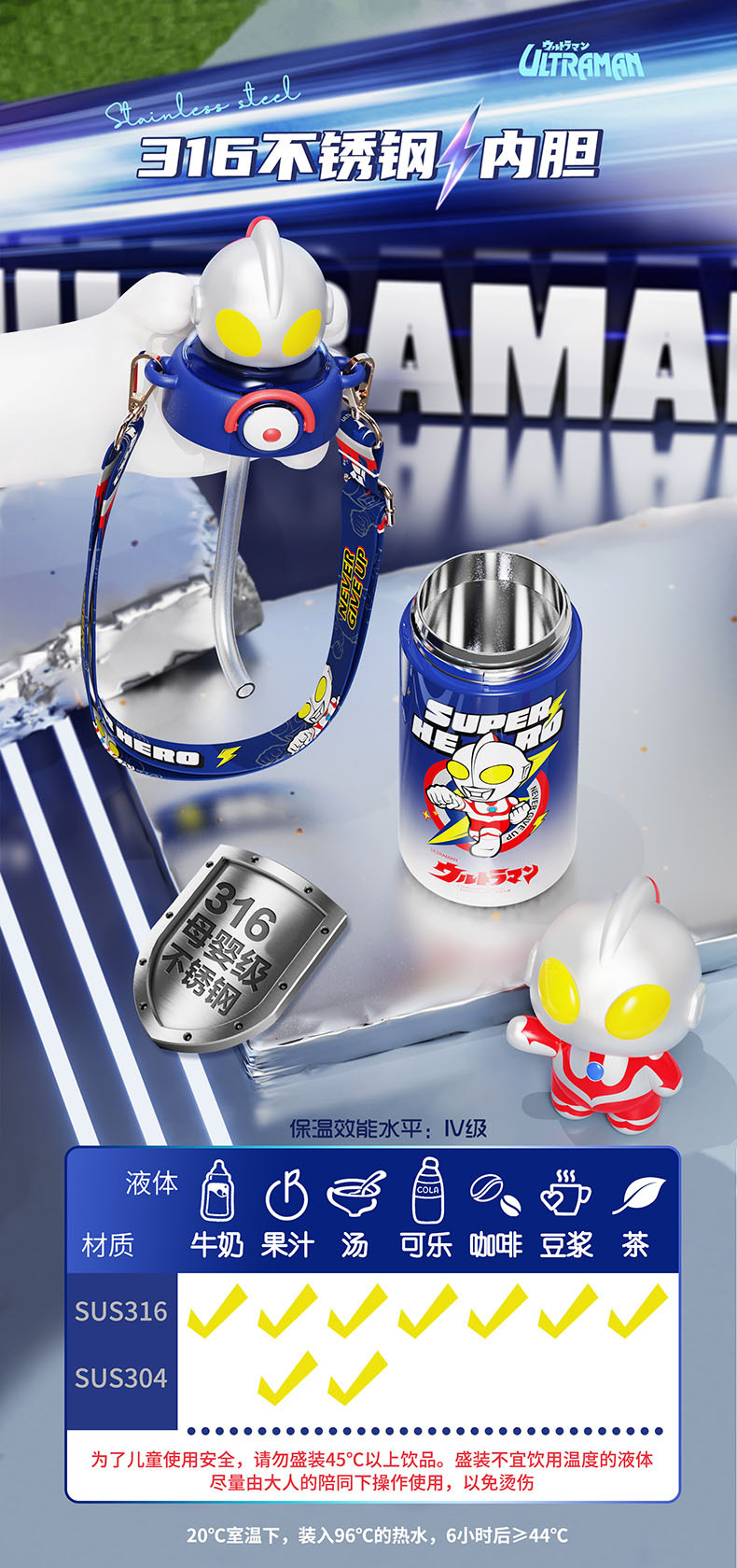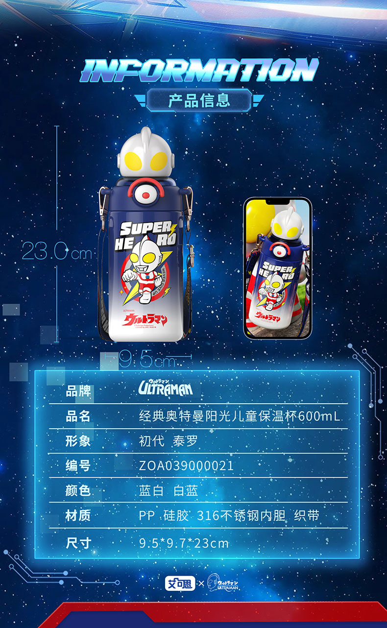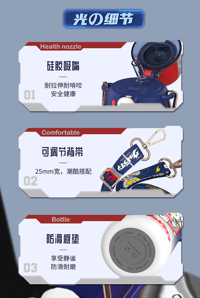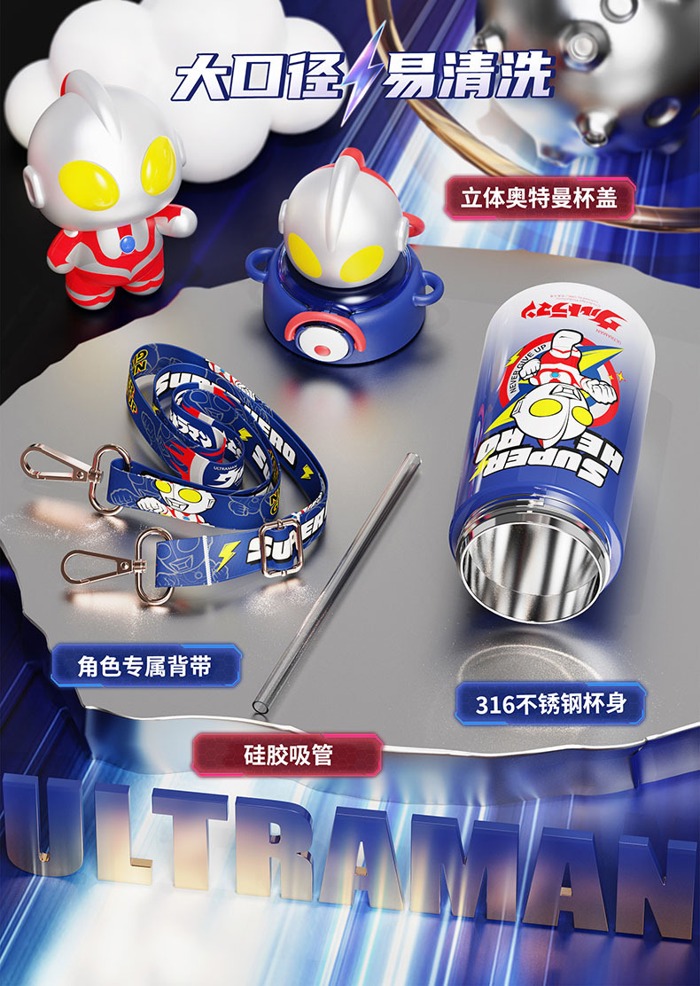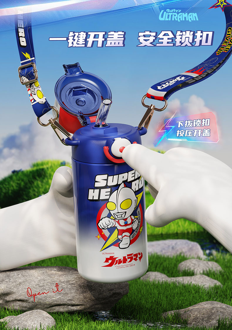 儿童保温杯316不锈钢大容量吸管杯学生高颜值便捷斜跨水壶_ym