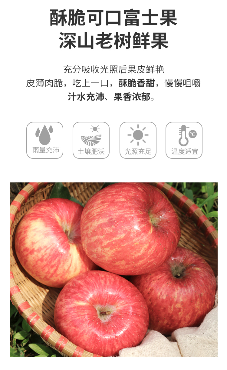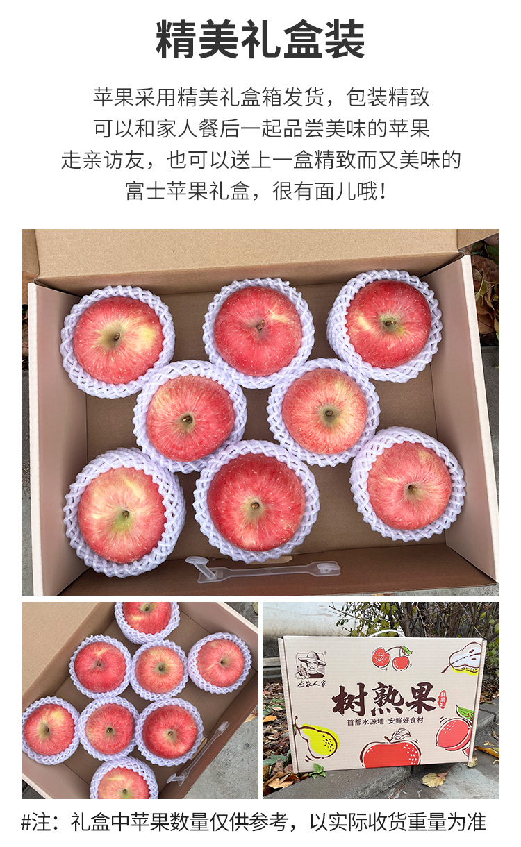 【送礼必备】密农人家新鲜红富士苹果礼盒 脆甜爽口 时令水果 不打蜡 6斤包邮