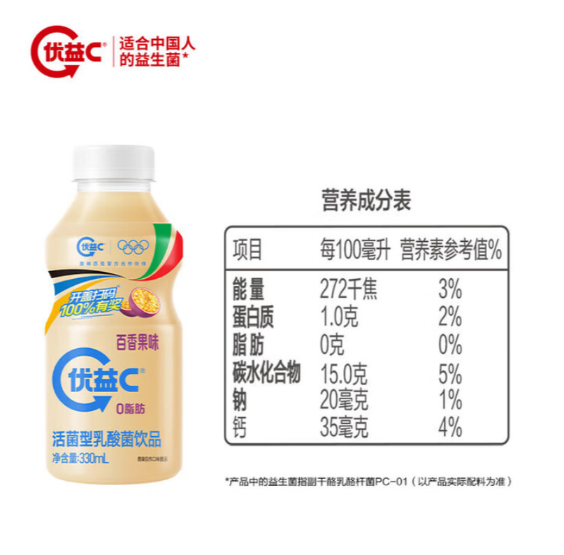 优益C乳酸菌饮品 百香果味 330ml/瓶