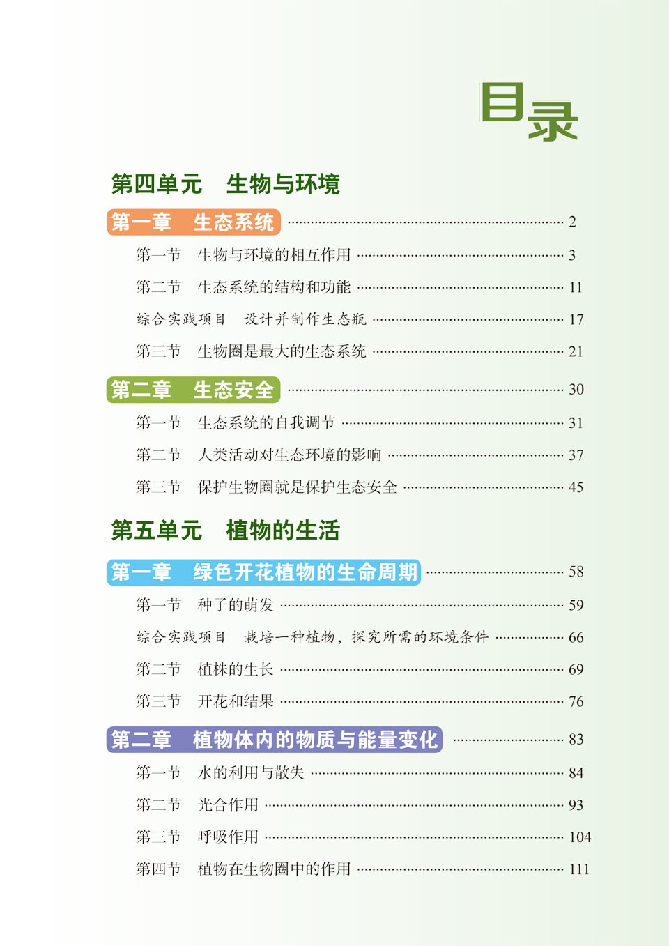 2025年新版 义务教育教科书(五·四学制) 生物学 六七八年级 上下册