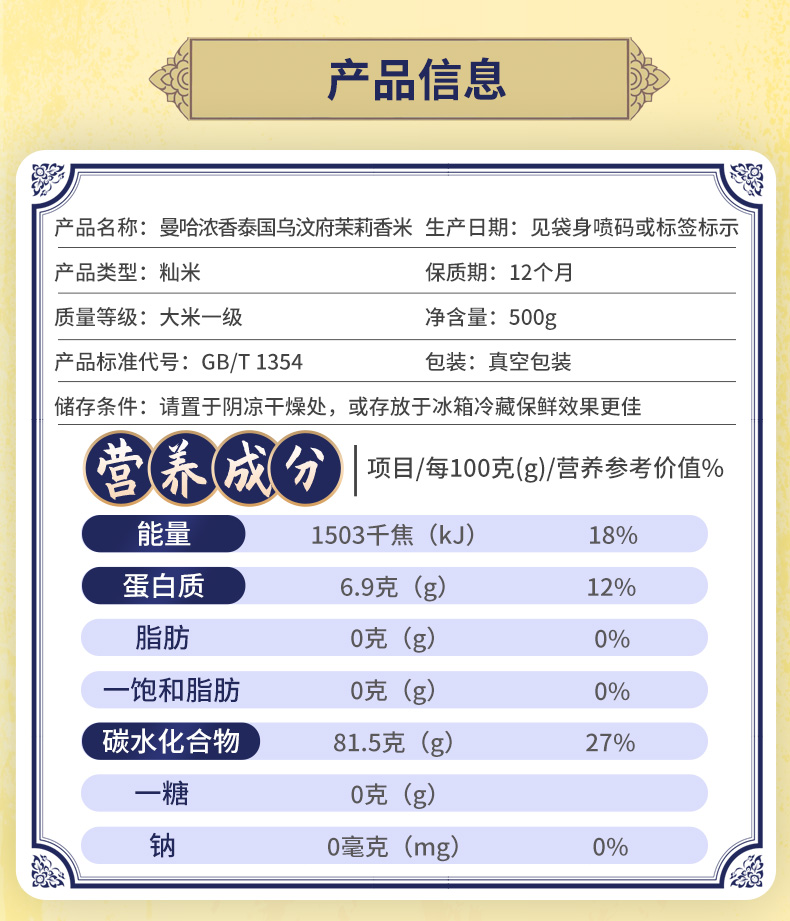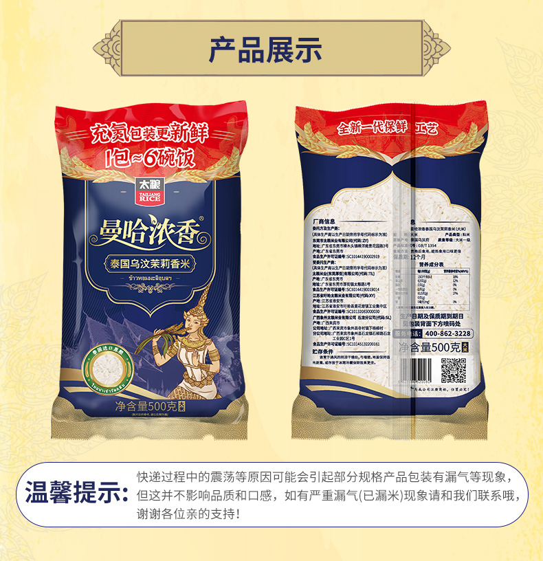 曼哈浓香泰国乌汶茉莉香米 500g