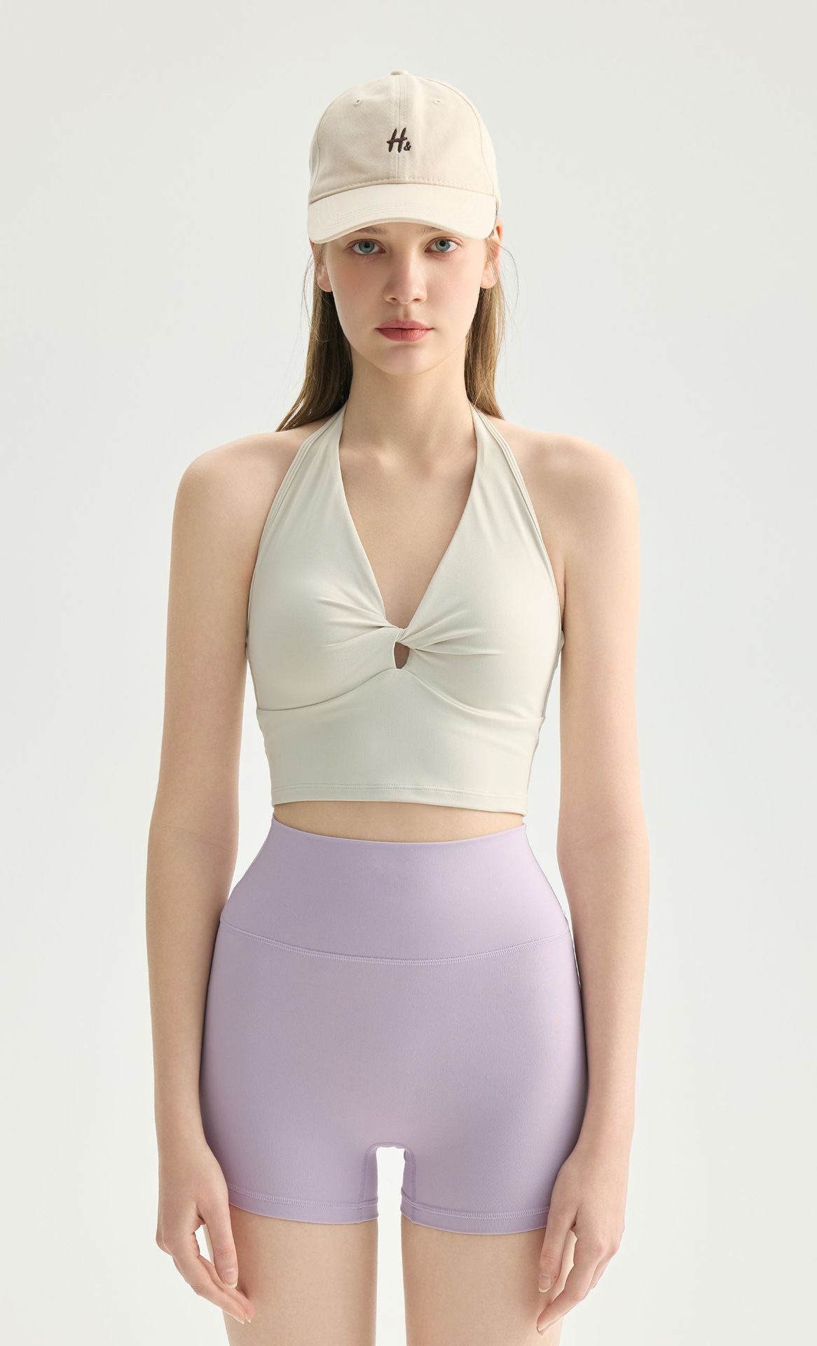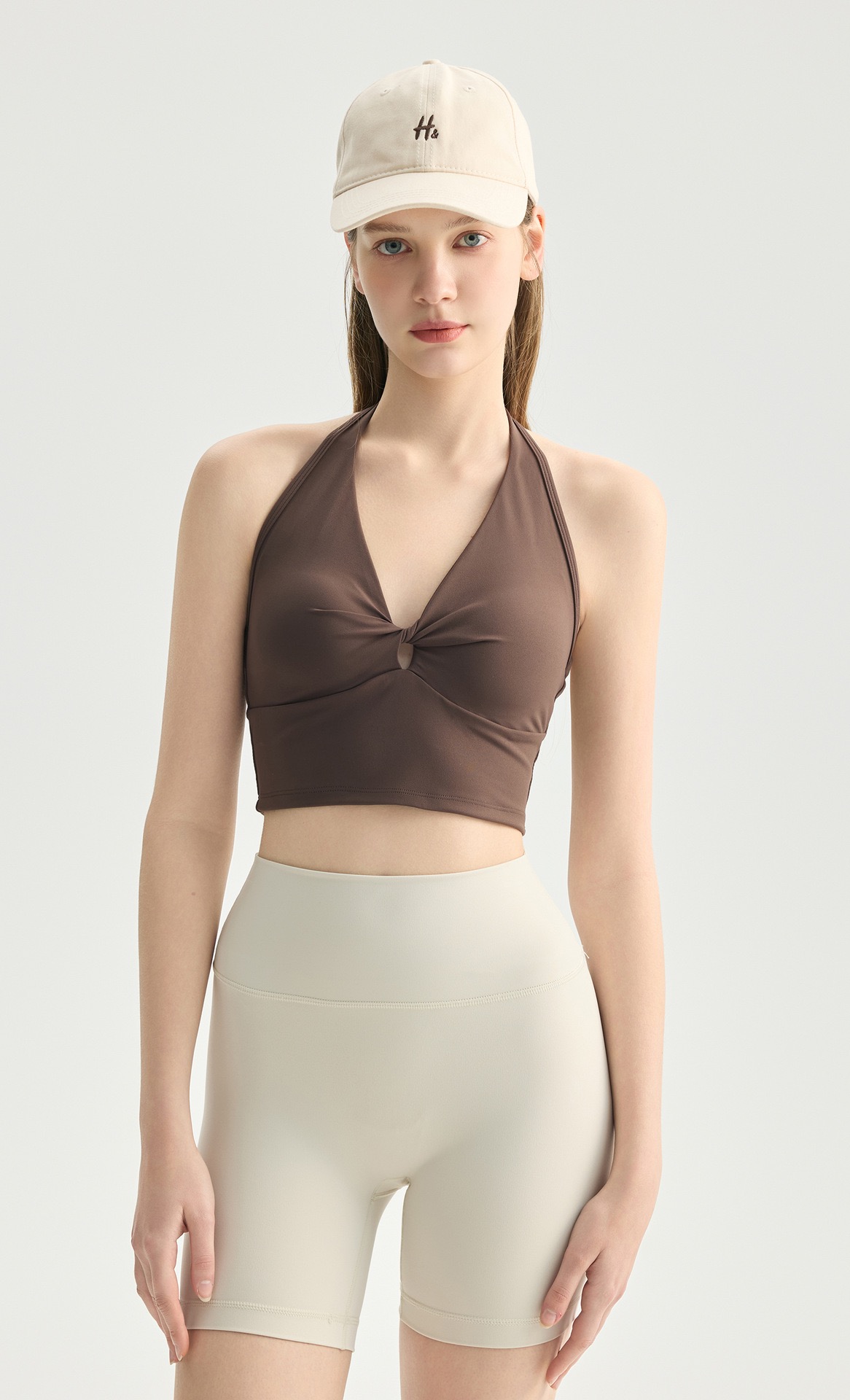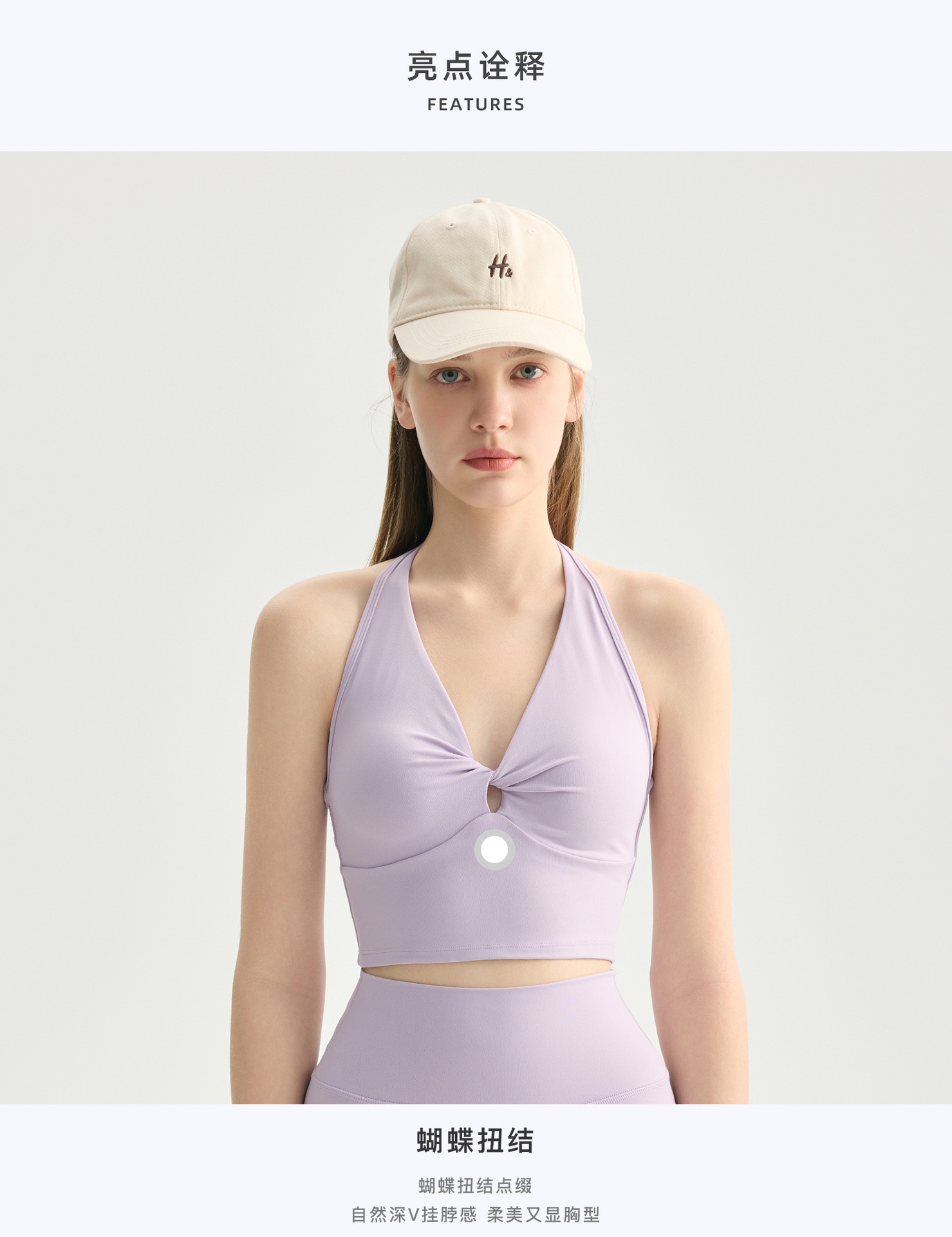 2026年新款蝴蝶扭结V领挂脖瑜伽内衣女带胸垫可调节美背运动文胸外穿健身bra 000AWX62022D