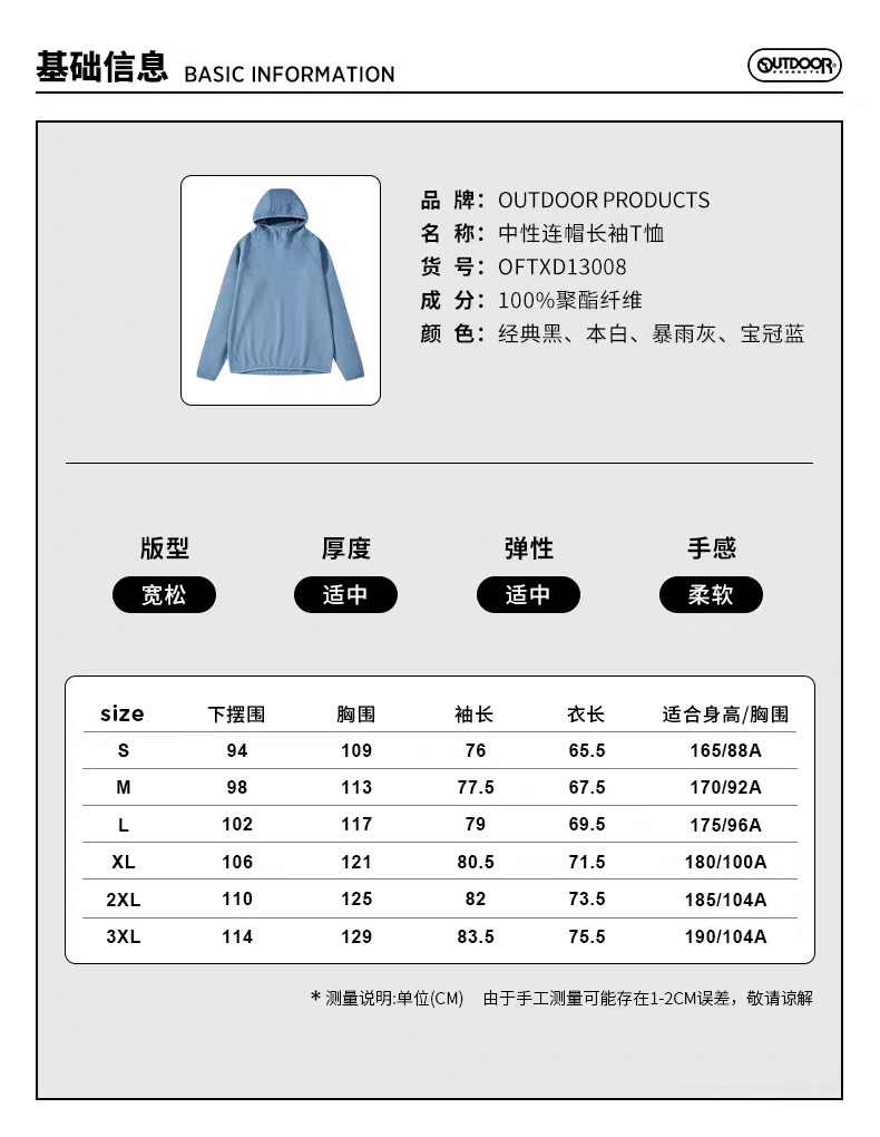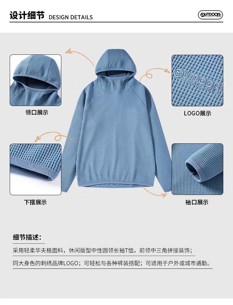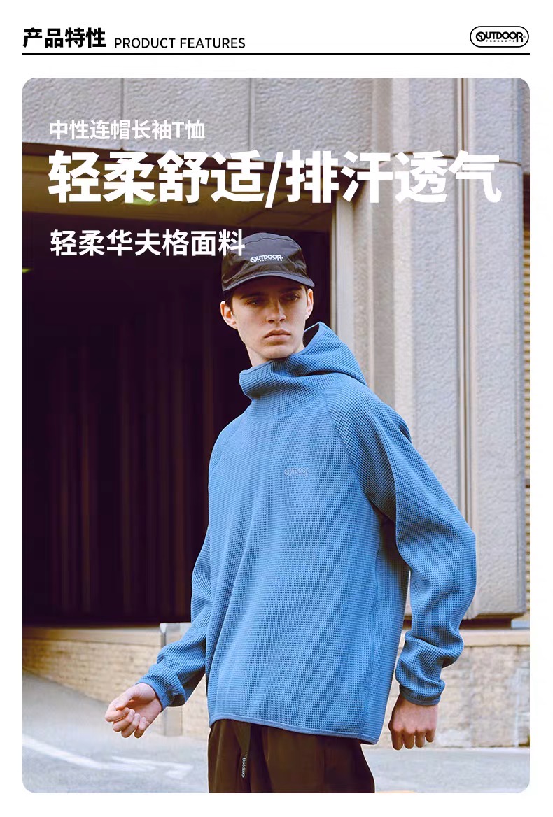 【春上新】【6折】6楼OUTDOOR新款圆领连帽柔软吸汗速干舒适中性款长袖上衣吊牌价559折后价335