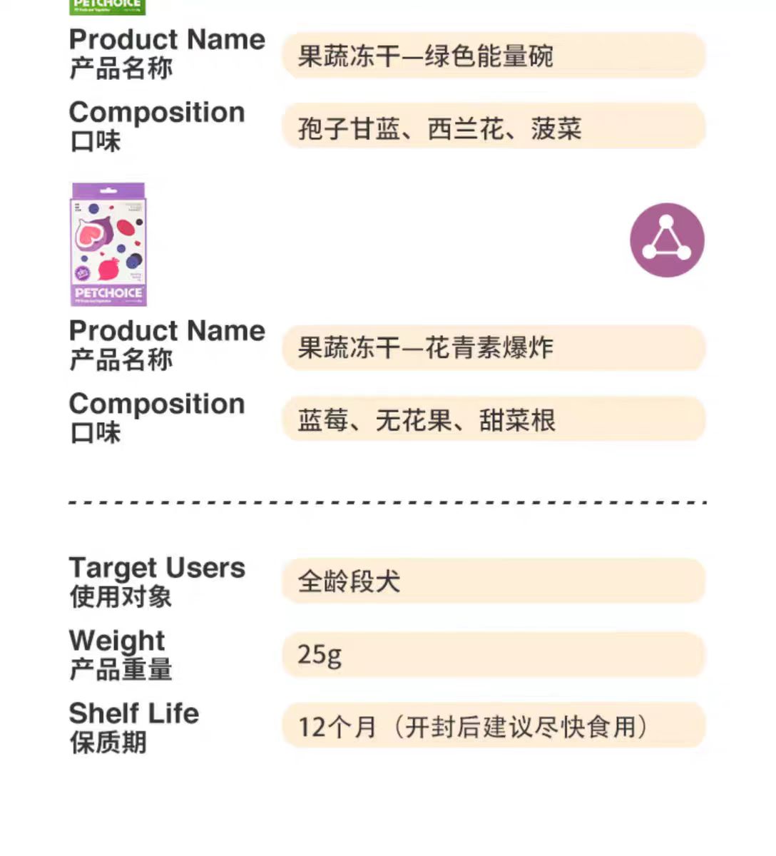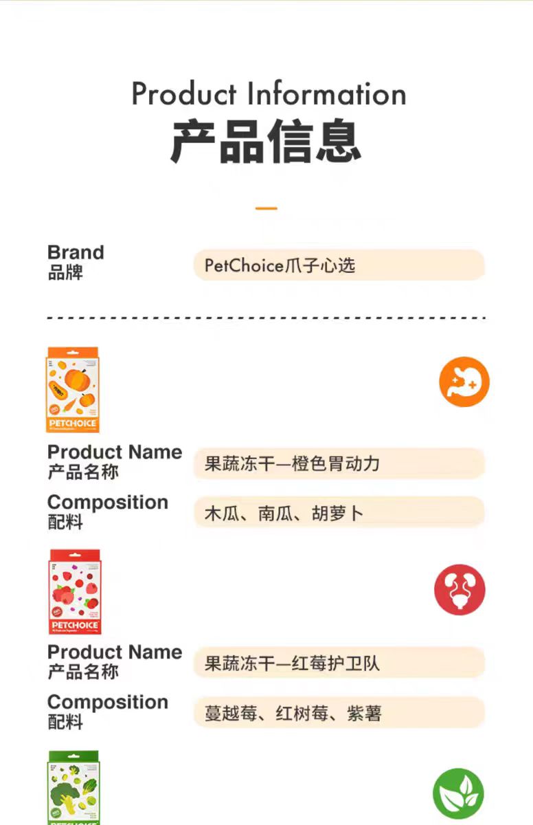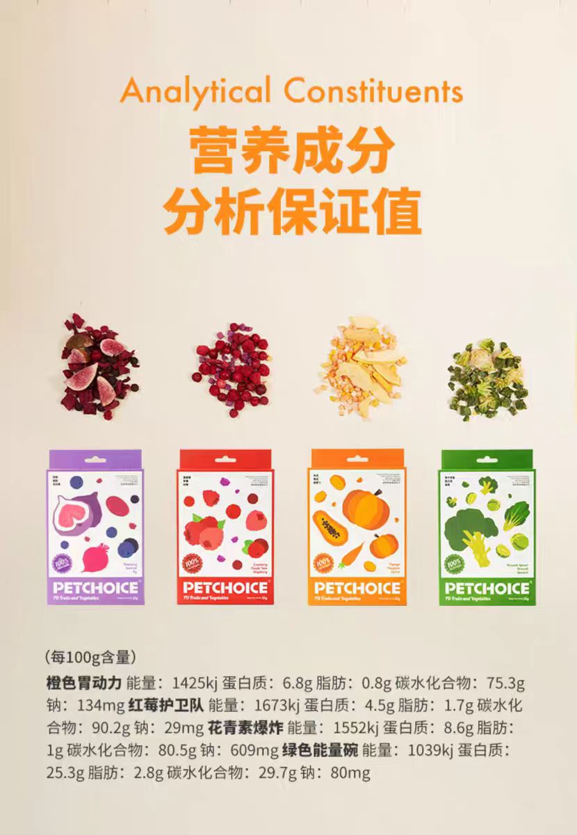 4楼Eubelle欧蓓 PetChoice爪子心选果蔬冻干25g 水果蔬菜孢子甘蓝 宠物幼犬狗零食 活动价:29元