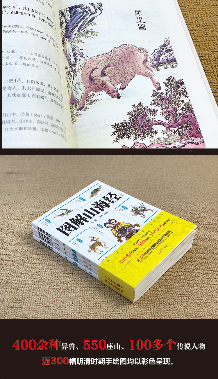 共4册全18卷 图解山海经小学生版彩绘版儿童版原著正版全译画集书籍童话图说画册系列写给孩子读得懂的山海经三四五六年级课外阅读