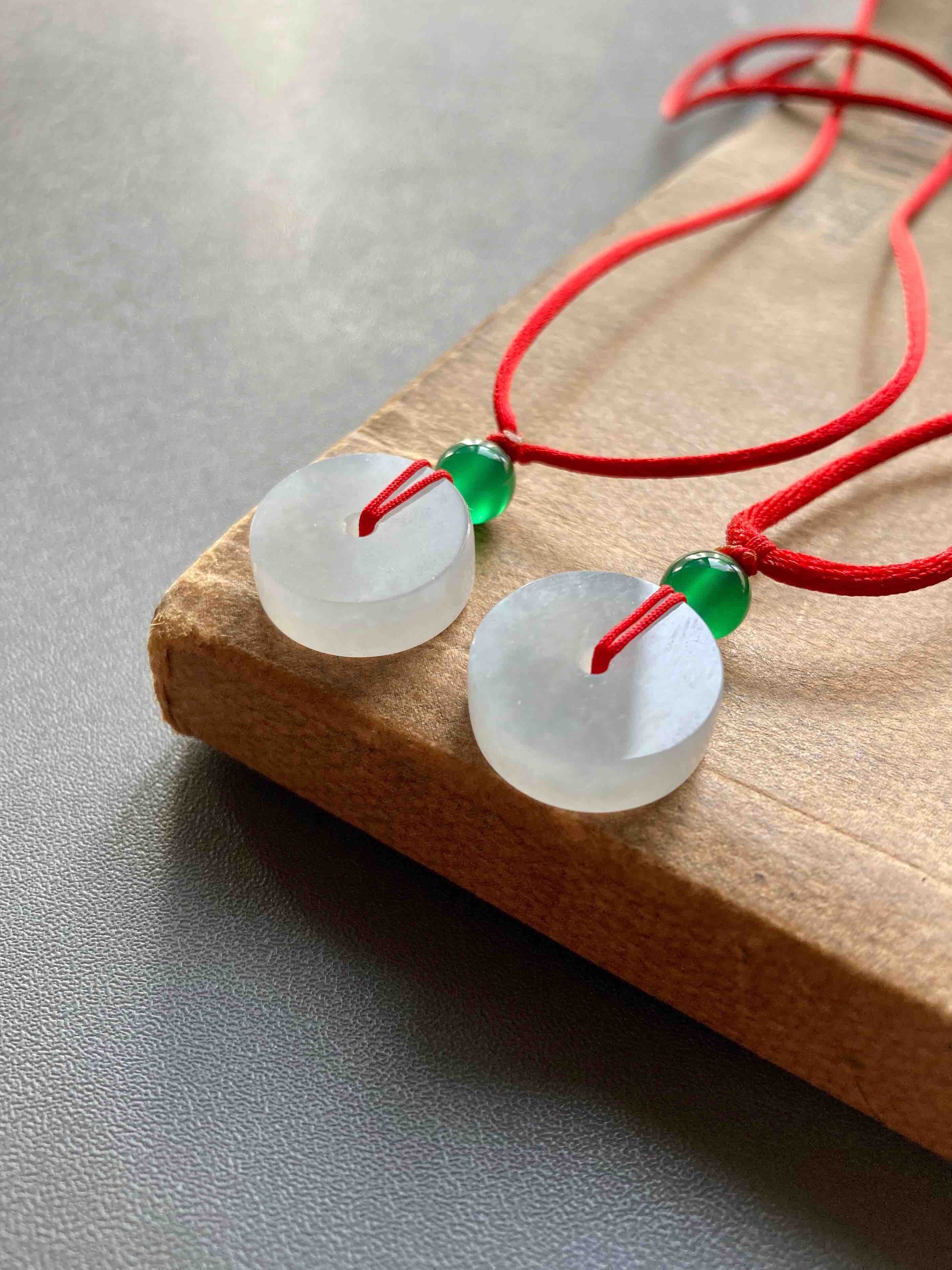 糯冰种翡翠路路通,漂亮吗?规格超好的大桶珠,13.5×13.5×16.6mm,买路路通送平安扣,16×16×5.4mm,买一送二,同料做的,就像厚厚的米糕一样,好Q,路路通给妈妈戴,两个平安扣给宝宝戴,母子连心,平平安安。超级实惠