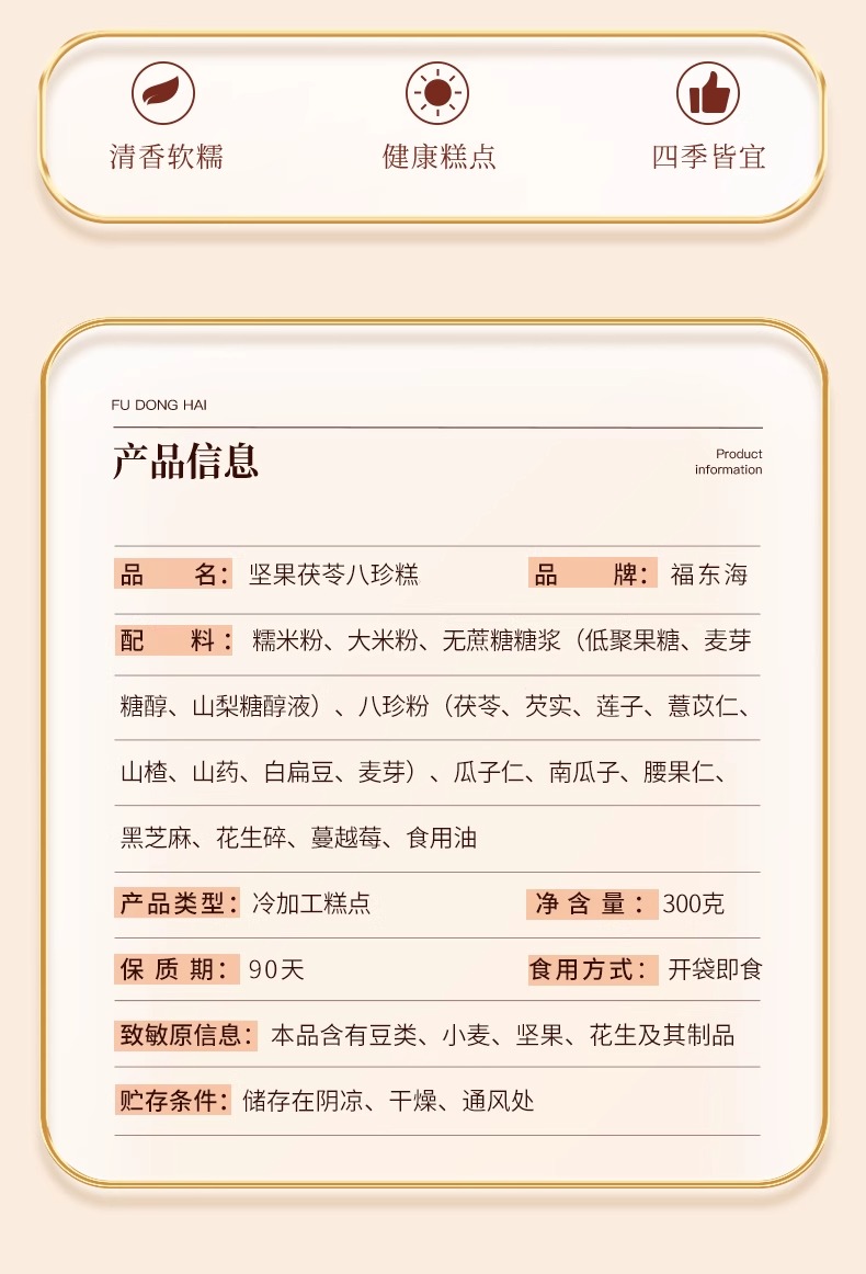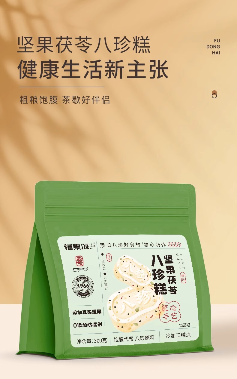 福东海 坚果茯苓八珍糕300g【无蔗糖】山药芡实米糕正宗薏湿糕健康零食