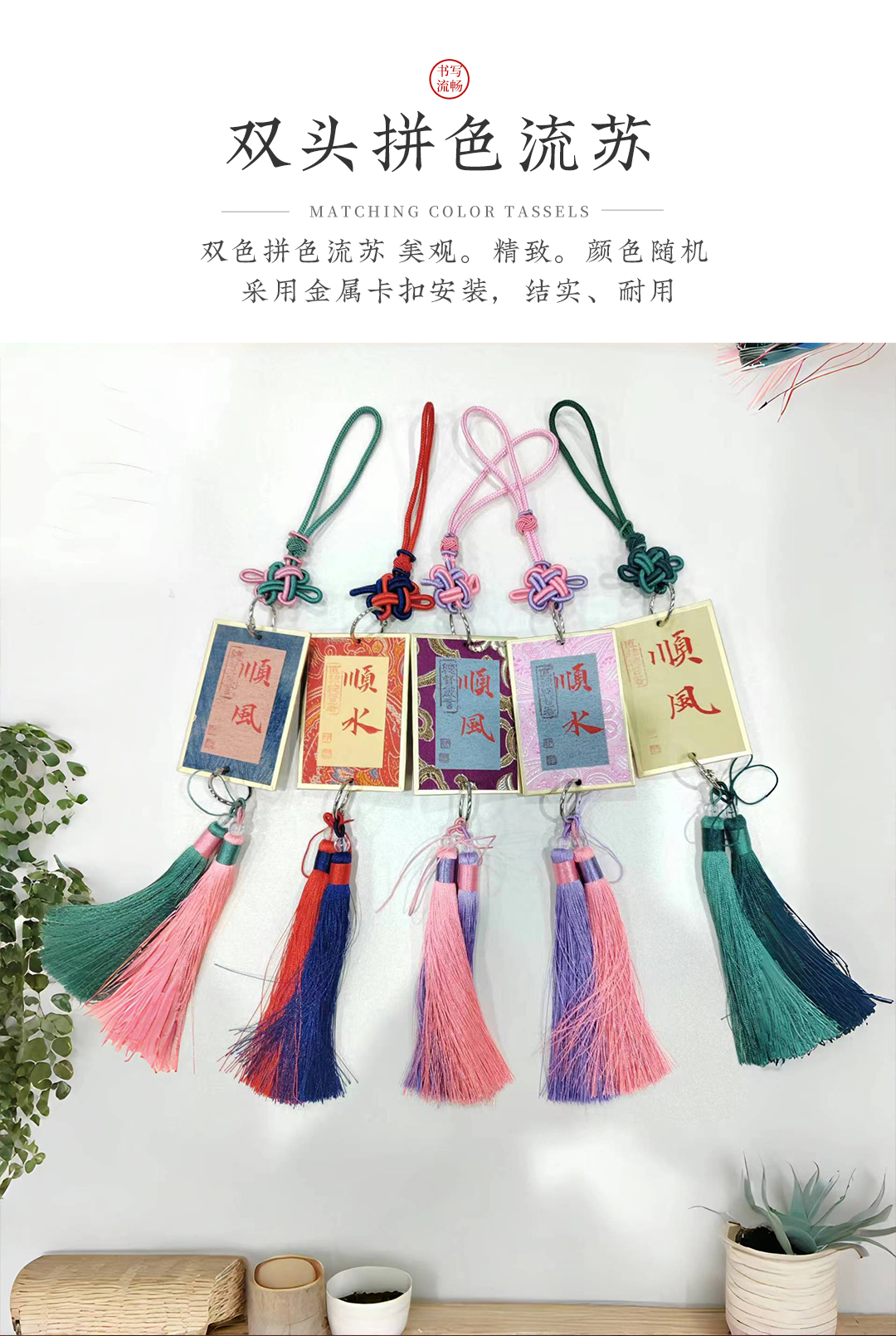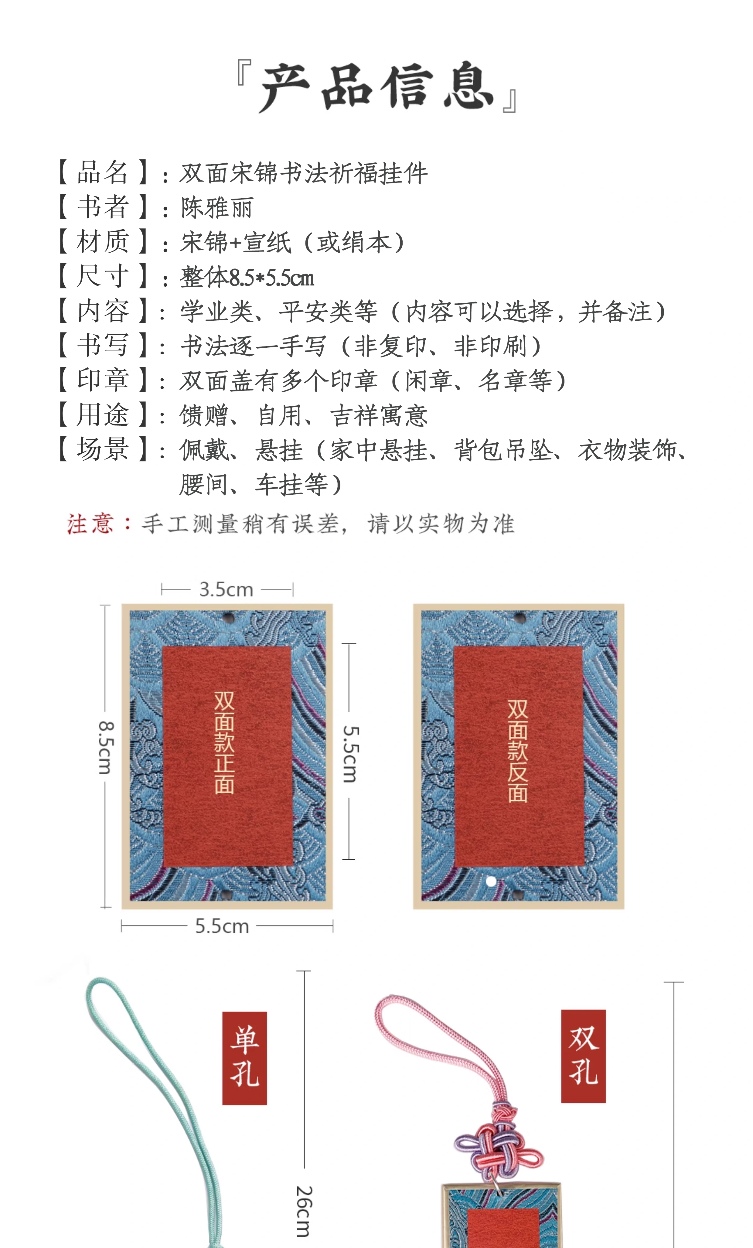 手写祝福-宋锦吊坠(长40cm)
