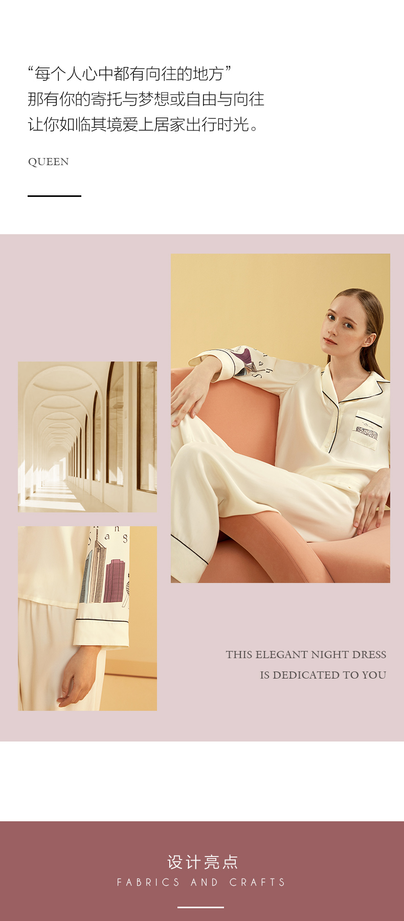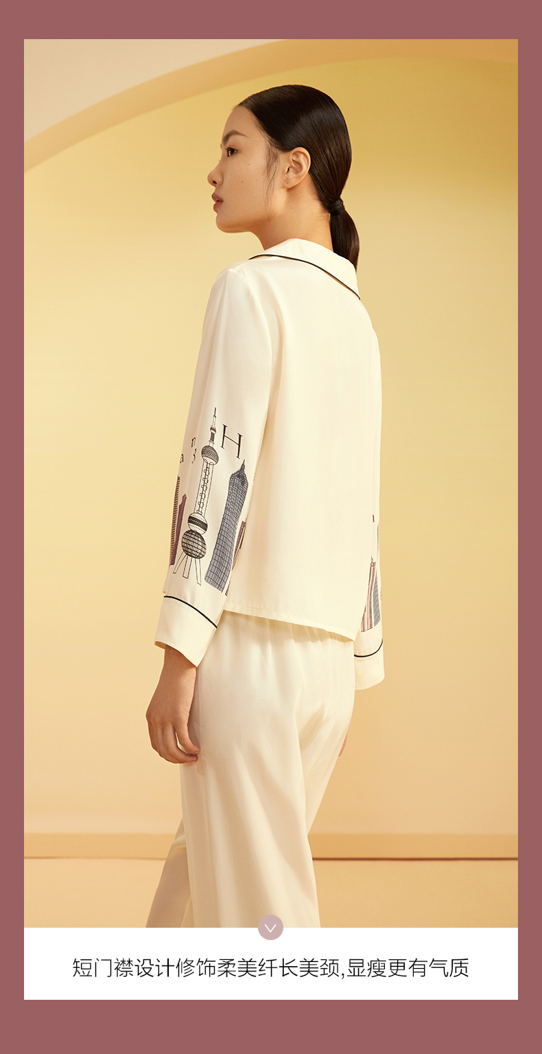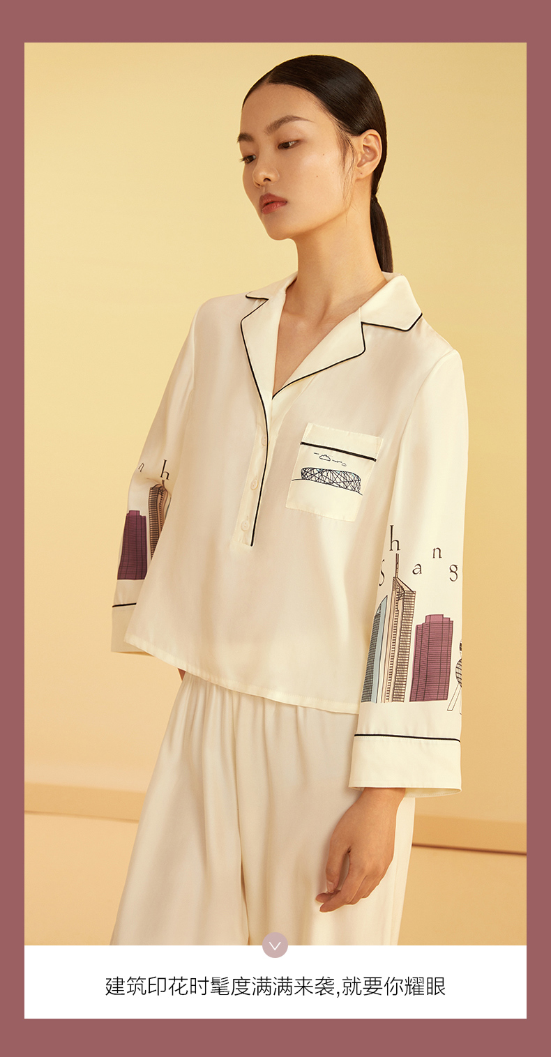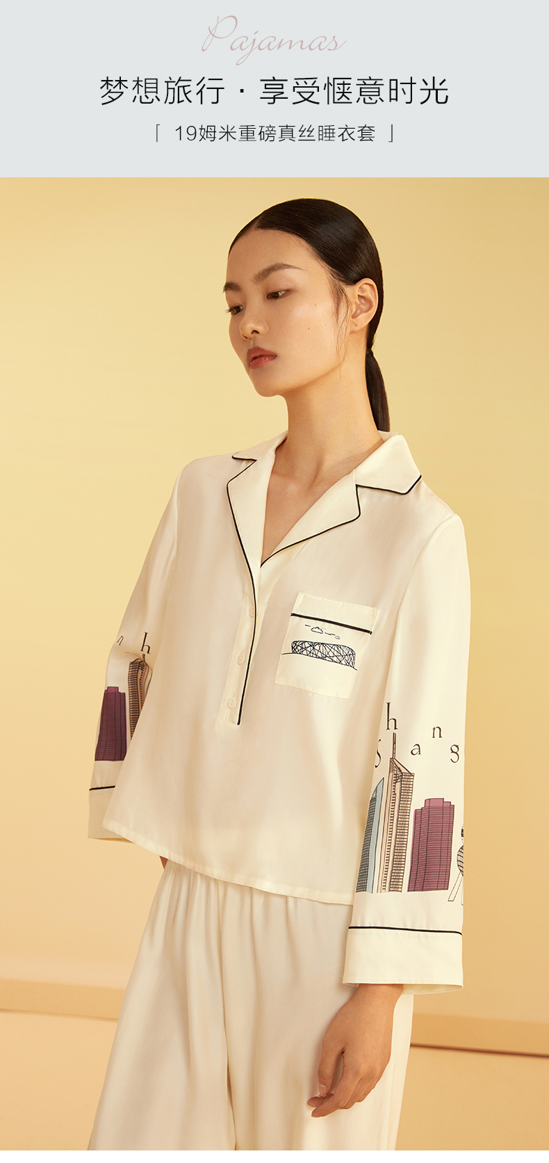 金三塔重磅真丝睡衣印花两件套100%桑蚕丝家居服女YSFBA214