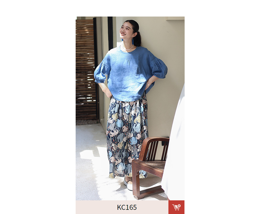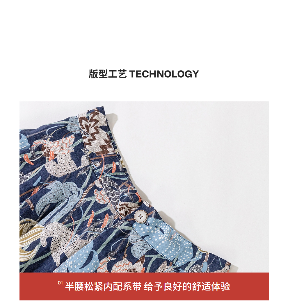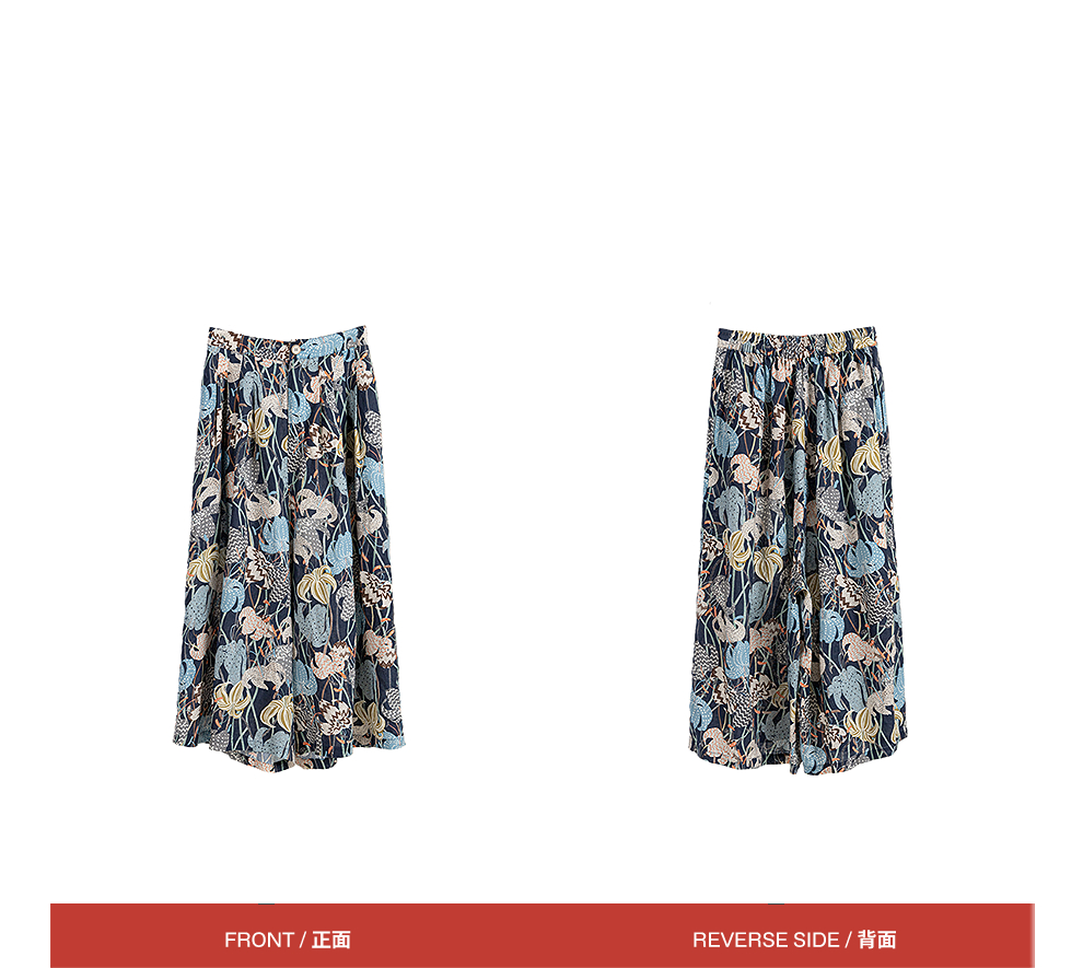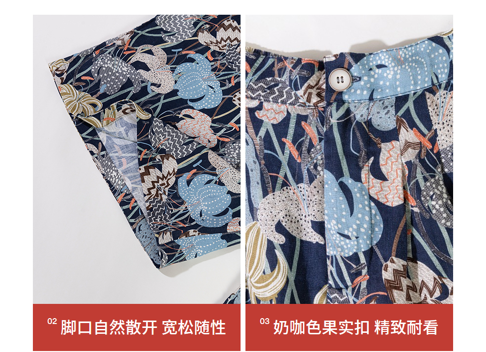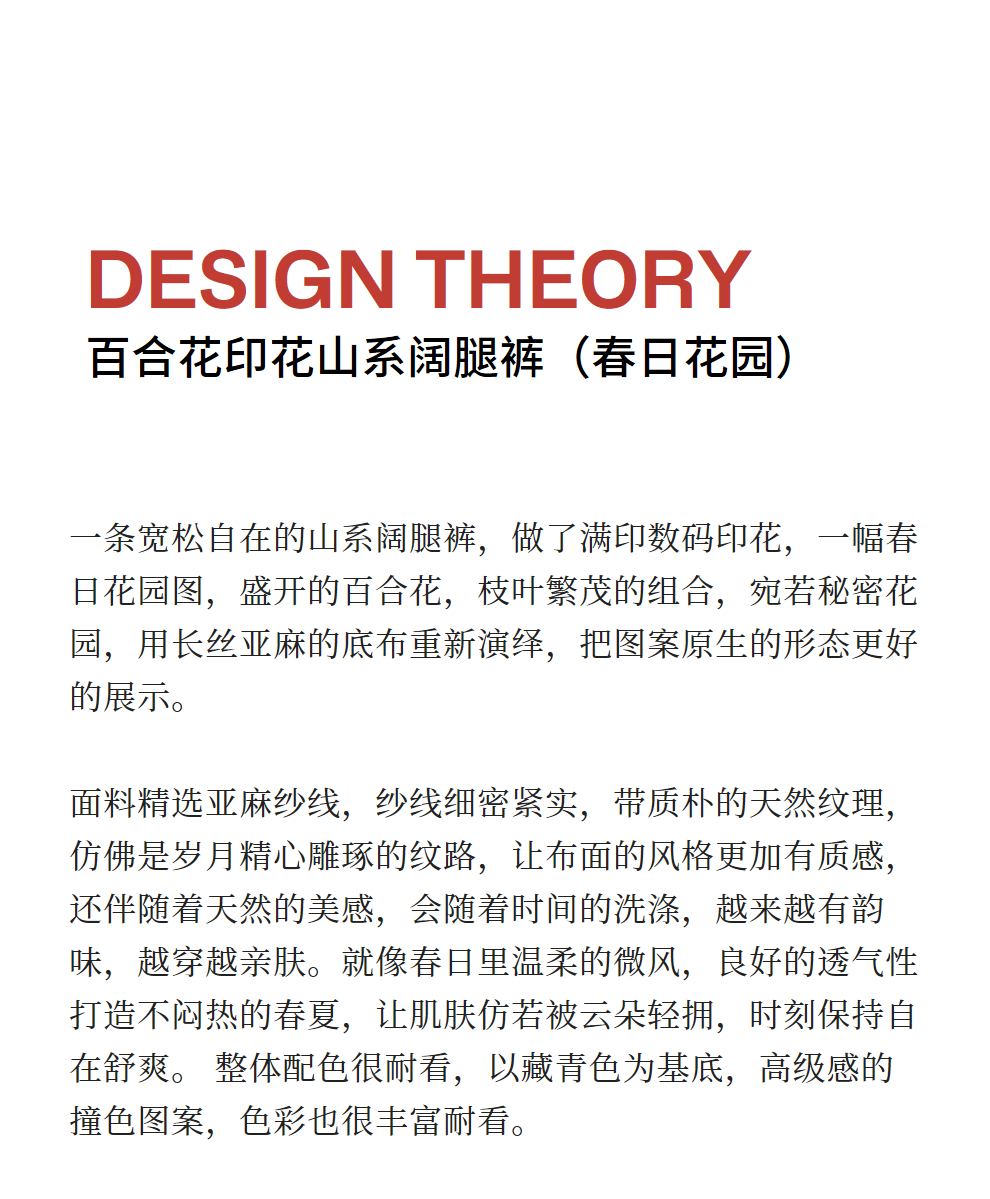 绽放旅行女装161朵/春日花园阔腿裤亚麻百合花印花山系透气裤子
