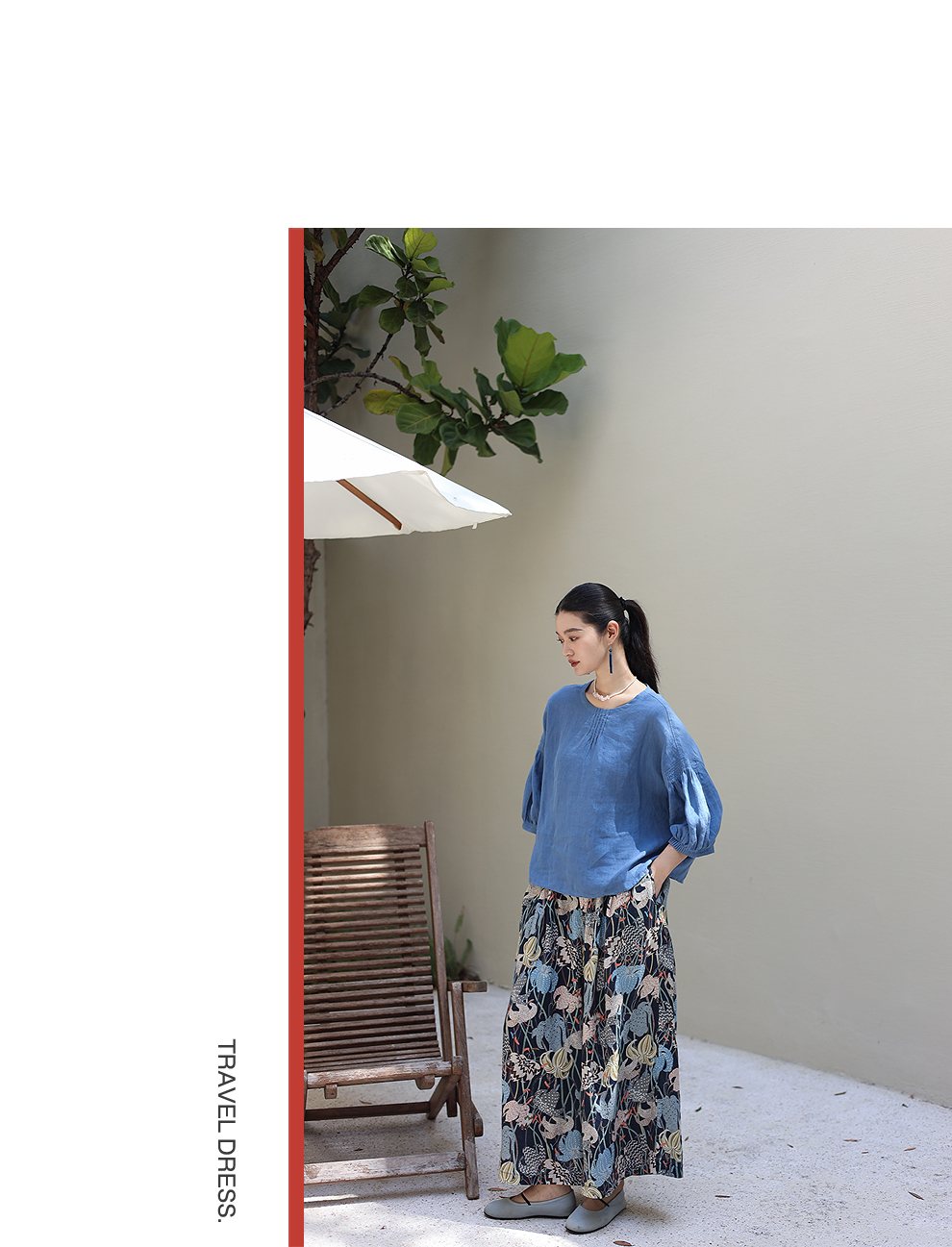 以天然亚麻为载体,融合热烈色彩与自在剪裁为身在城市、心怀远方的女性提供兼具美学与舒适的旅行着装