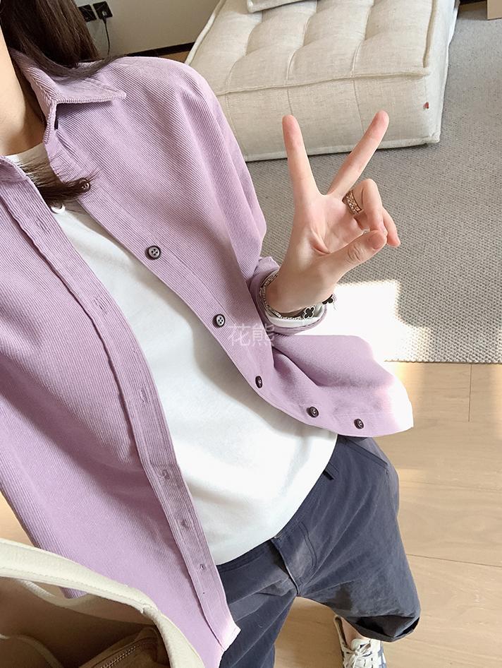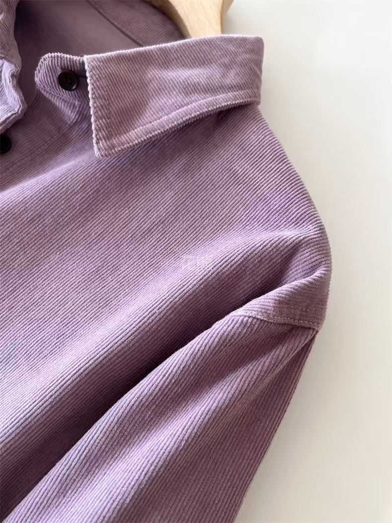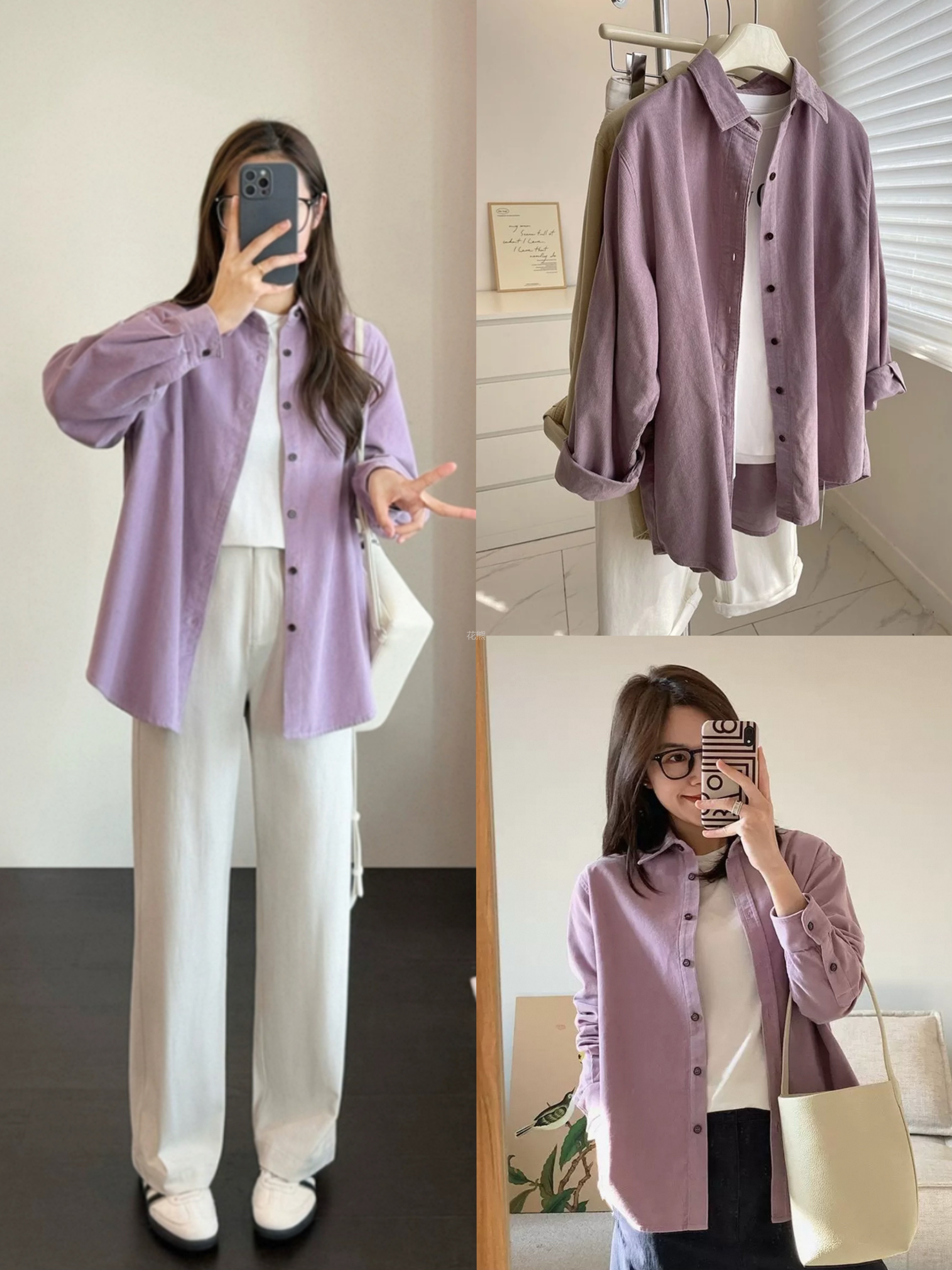 【香芋紫灯芯绒衬衫外套】将梦幻与温柔定格于衣衫之上!打造早春浪漫穿搭!柔软温暖,春秋冬三季都可穿!绝美巨显白!采用16w无弹全棉灯芯绒,直身翻领设计,自然修饰脖颈显精气神