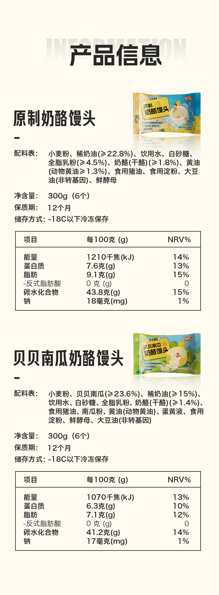 好吃,香迷糊了!饼同学原制奶酪馒头/贝贝南瓜奶酪馒头 300g/袋(50g*6个)