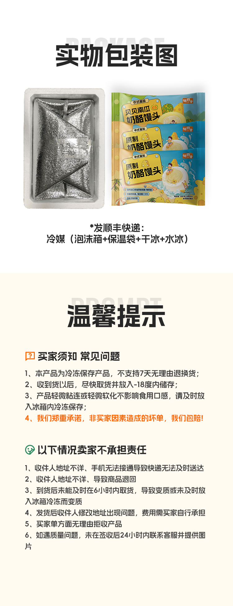 【品名】饼同学原制奶酪馒头/贝贝南瓜奶酪馒头 【规格】300g/袋(50g*6个) 【保质期】12个月 【储存方法】-18℃以下冷冻保存 【产地】安徽马鞍山 【发货地】江苏南京 【发货快递】顺丰速运 【不发货区域】新疆,西藏,青海,海南,港澳台地区不发 【发货时效】48小时,节假日顺延 【赠品信息】 拍0.01元送果蔬小馒头/牛肉馅饼(随机送) 描述:单拍/多拍都不支持发货,限 1 份 时间:2025年11月6日-11月20日 |