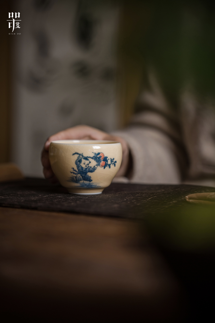问鼎器度汝窑鹅黄青花精工款玉京杯(童子拜寿)(缺货)