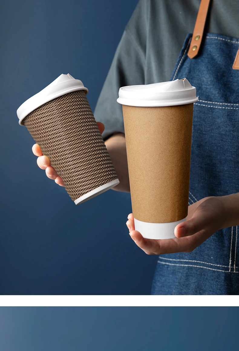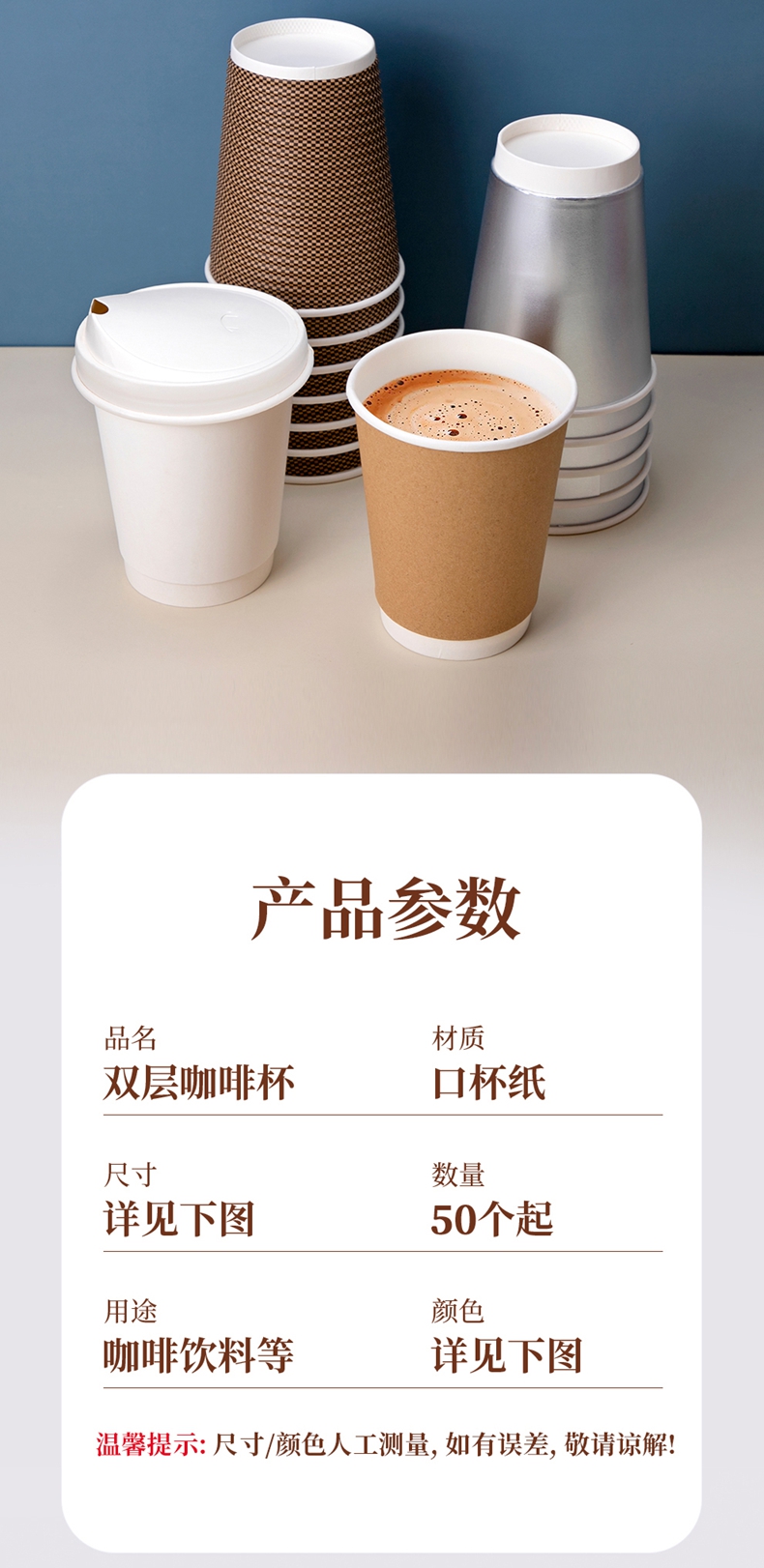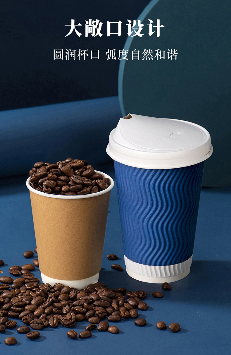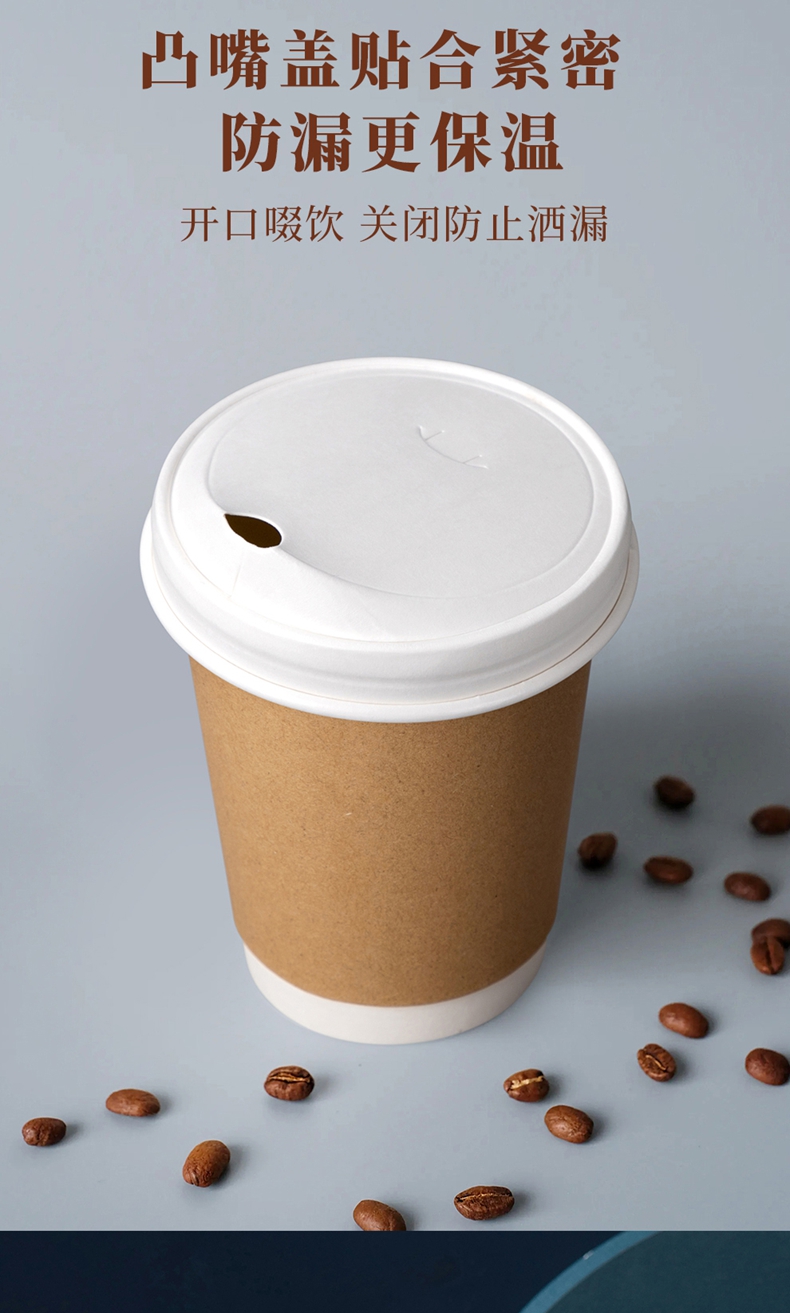 喇叭花咖啡杯双层纸杯一次性咖啡杯奶茶纸杯外卖打包带盖热饮直饮凸嘴盖